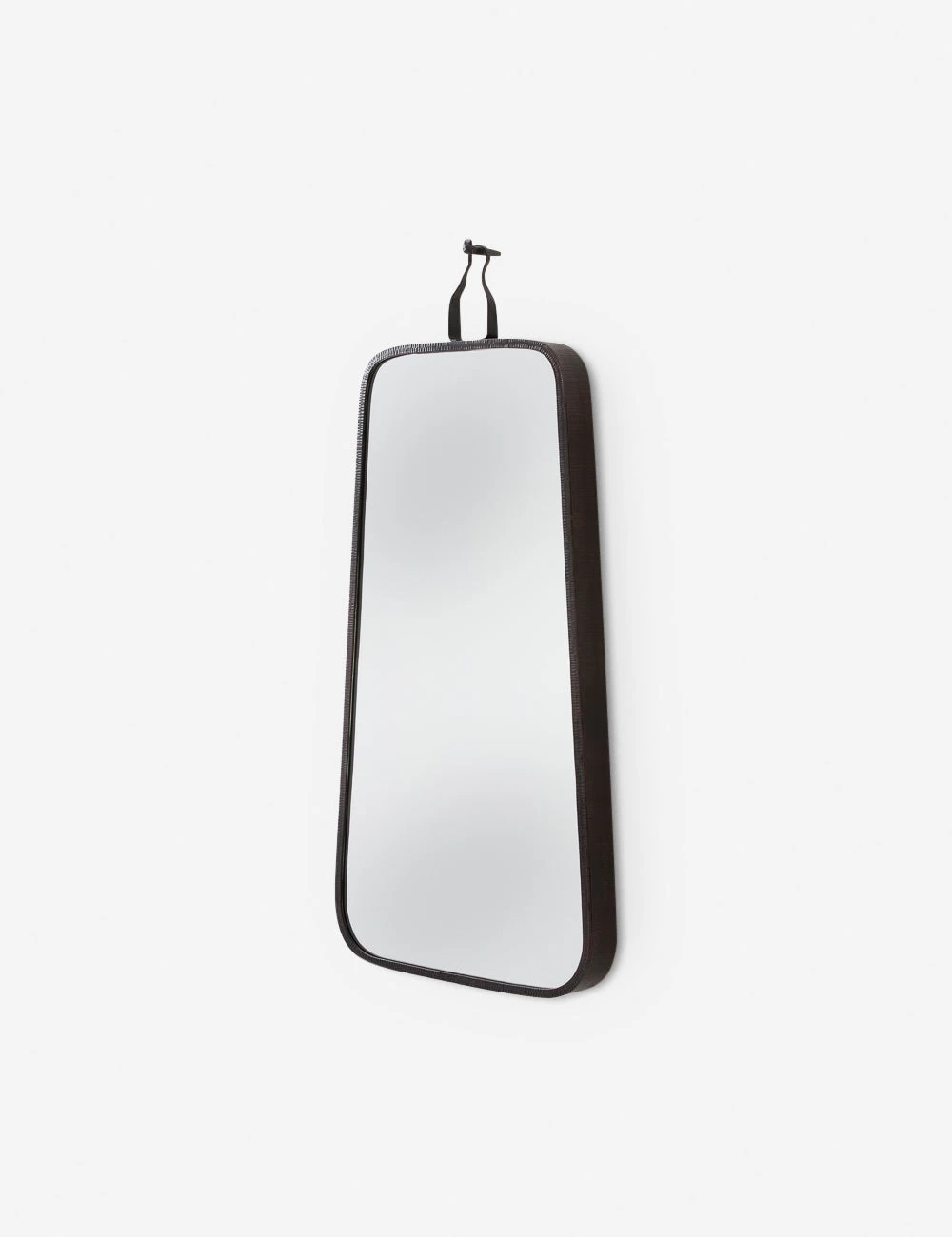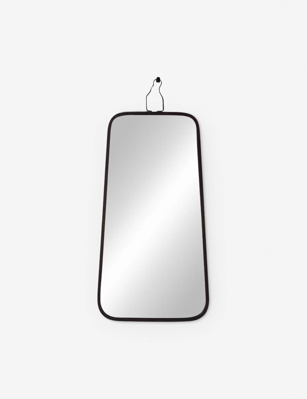 A striking design by Barry Dixon features a textural iron frame with a decorative spike to give the illusion of a rustic hanging mirror. Mount this unique framed mirror for an industrial look that folds perfectly into a moody aesthetic.
