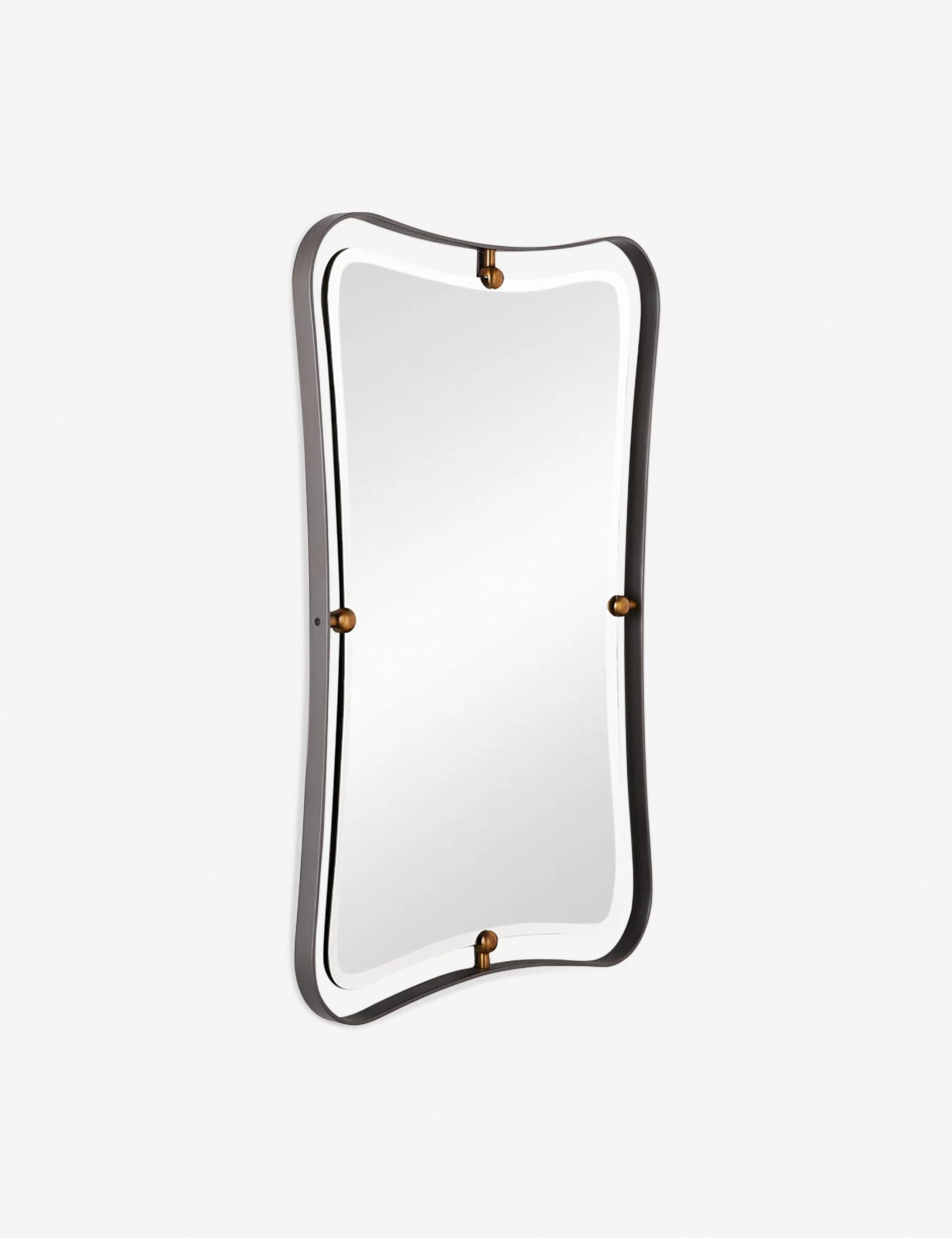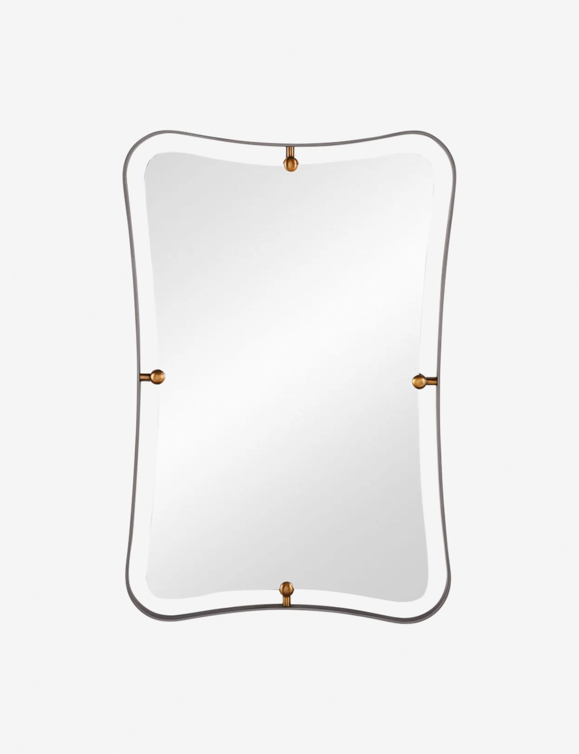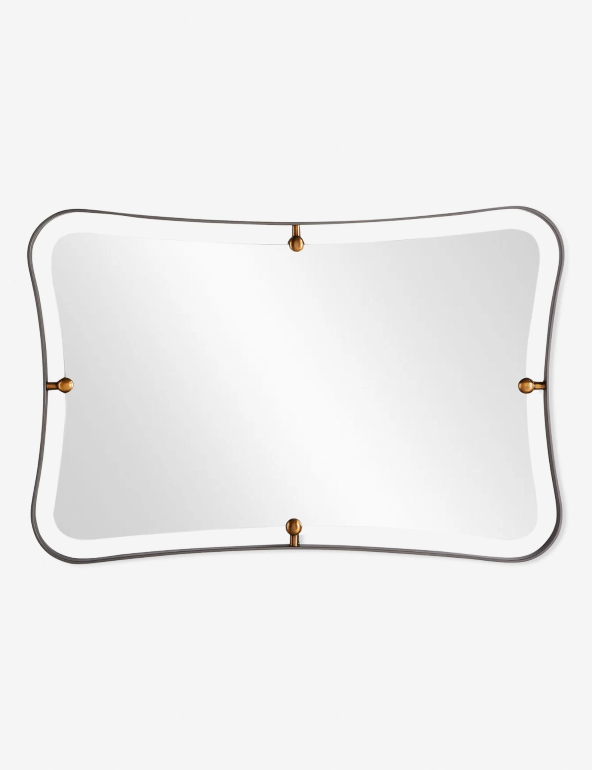 A wave-like iron frame with polished brass accents inspires a dynamic tone in this hourglass-shaped mirror. We love how the soft yet symmetrical lines reflect a balanced aesthetic with a modern flair. Style this wall mirror vertically or horizontally for a fresh look in your space.