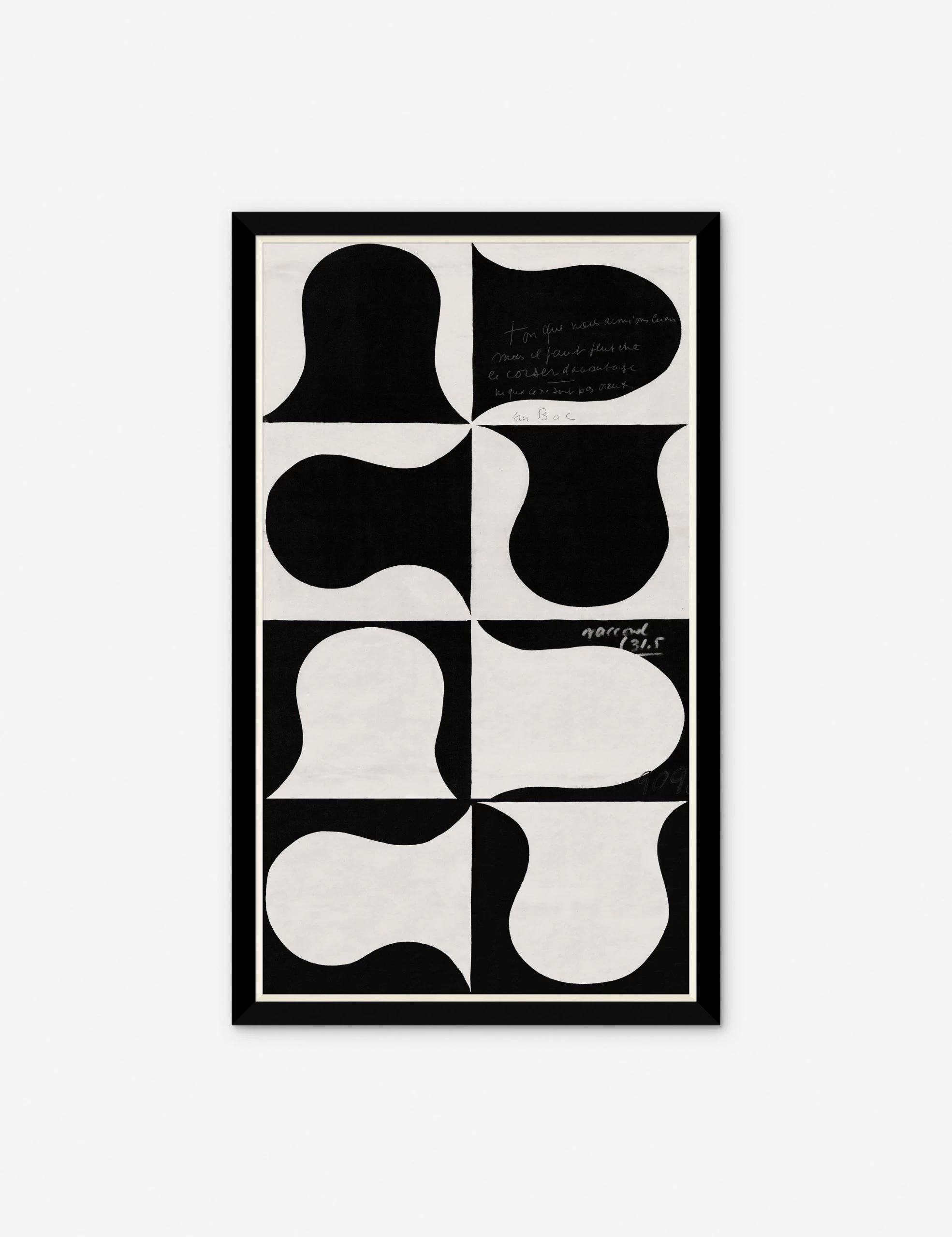 Elevate your wall decor with the iconic work of textile artist, engraver, and painter Paule Marrot. Each print captures her simple, lyrical style with boldness and fidelity—offering wall art with a fresh yet enduring appeal. The transposed shapes and stark palette of this abstract piece can bring impact to a modern curation.