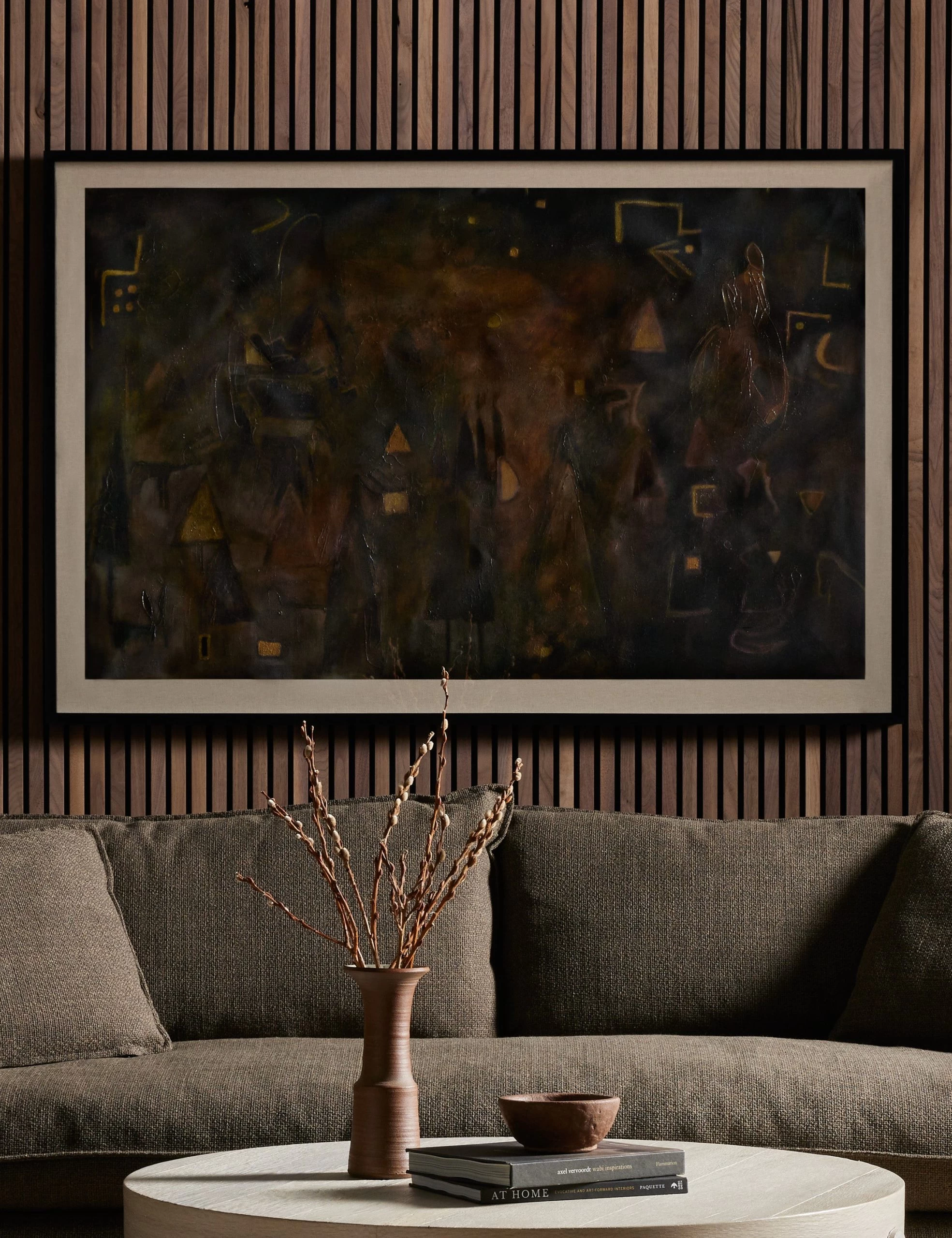 This wall artwork’s moody landscape is captured with stunning impact and finished in a textual varnish. The rich tones and abstract composition evoke a sense of depth and discovery—ideal for thoughtfully refined wall decor in a study or lounge.