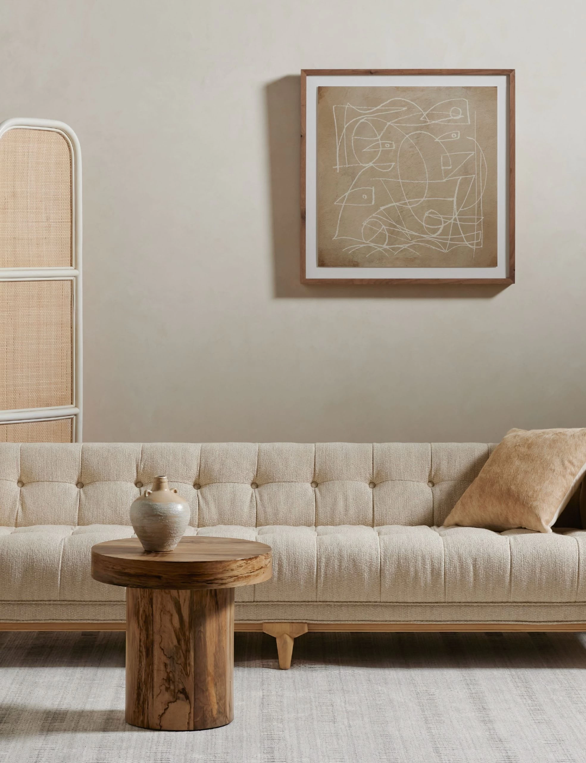 A line-driven composition fills the frame in this abstract wall art from Dan Hobday. The minimalist elements play against a rich backdrop, offering your wall decor depth and texture with a modernist edge.
