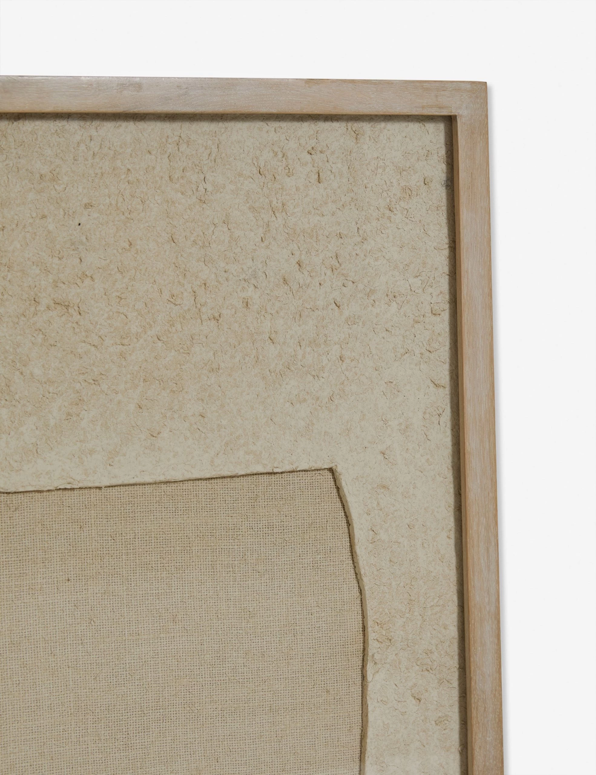 Add dimension to your wall decor with this mixed-media piece. The pulp overlay reveals a smooth jute surface below, fashioning this unique wall artwork with endless textural intrigue. Drey features an organic arrangement of shapes in an earthy neutral tone.