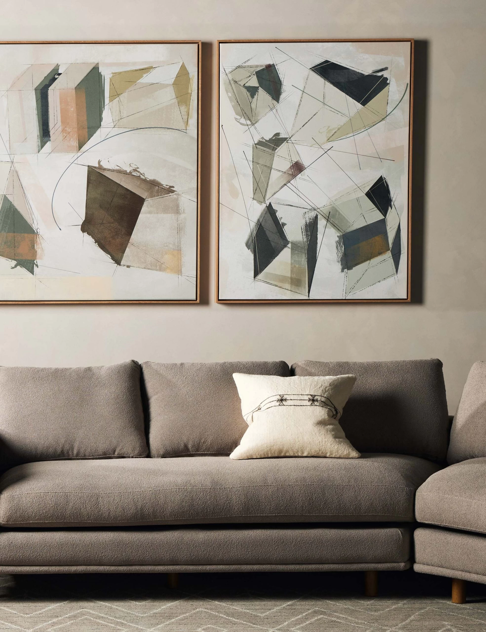 Abstract forms and sweeping lines bring a sense of play and movement to this diptych wall art set. The subtle colors let the pieces sit back in your wall decor, inviting intrigue with a modern edge.