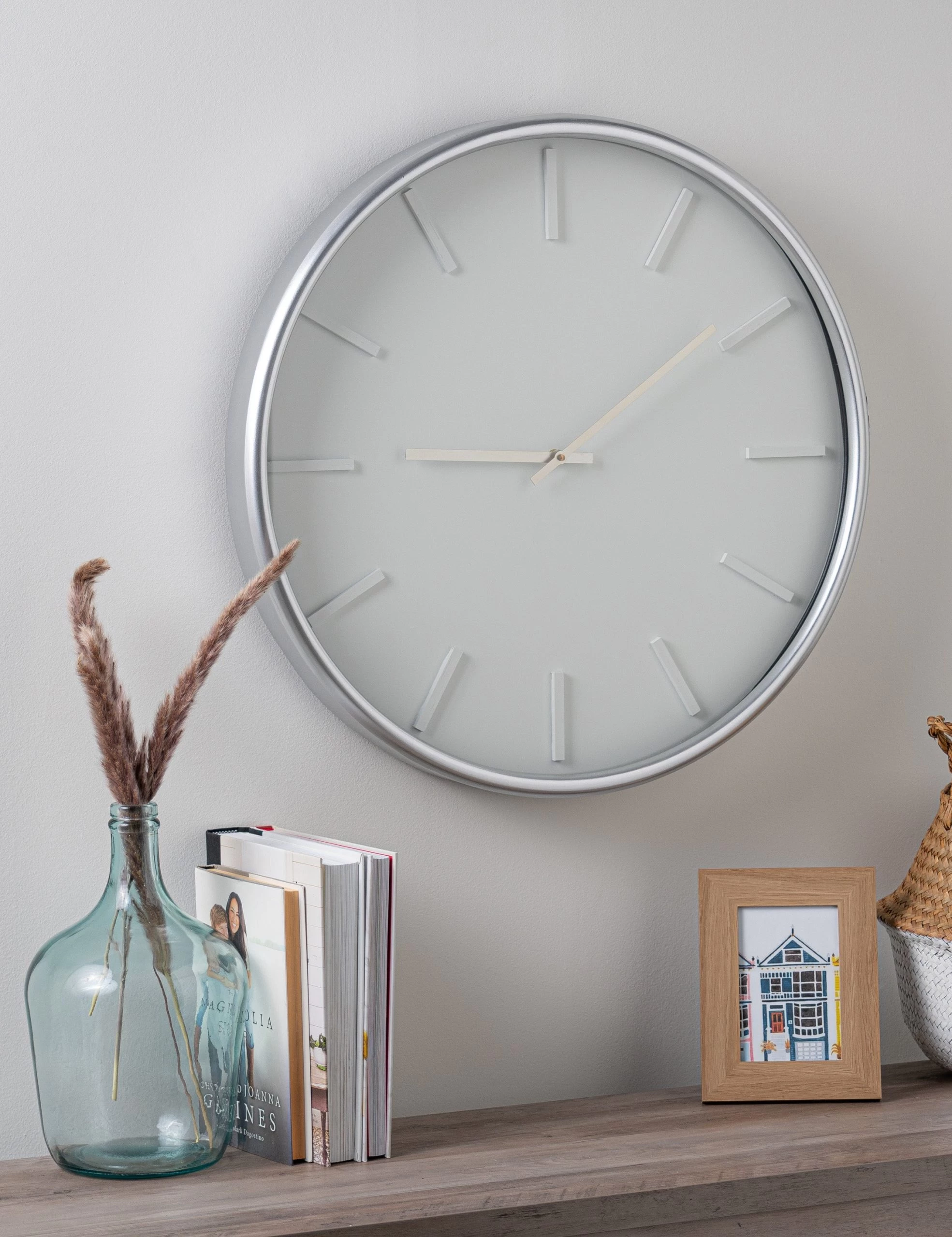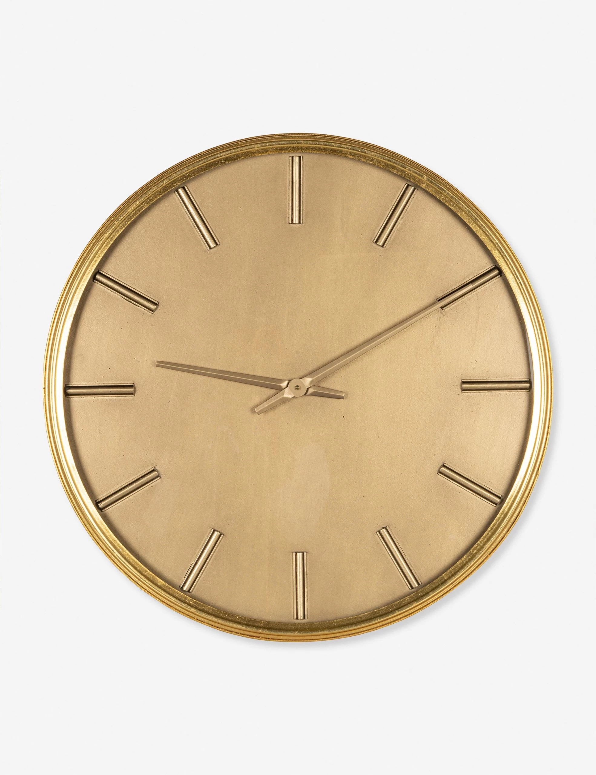 Add some luster to your look with this round metal wall clock. The minimalist dial and slim frame offer up polished elegance with a monochromatic finish that offers the perfect statement accent.