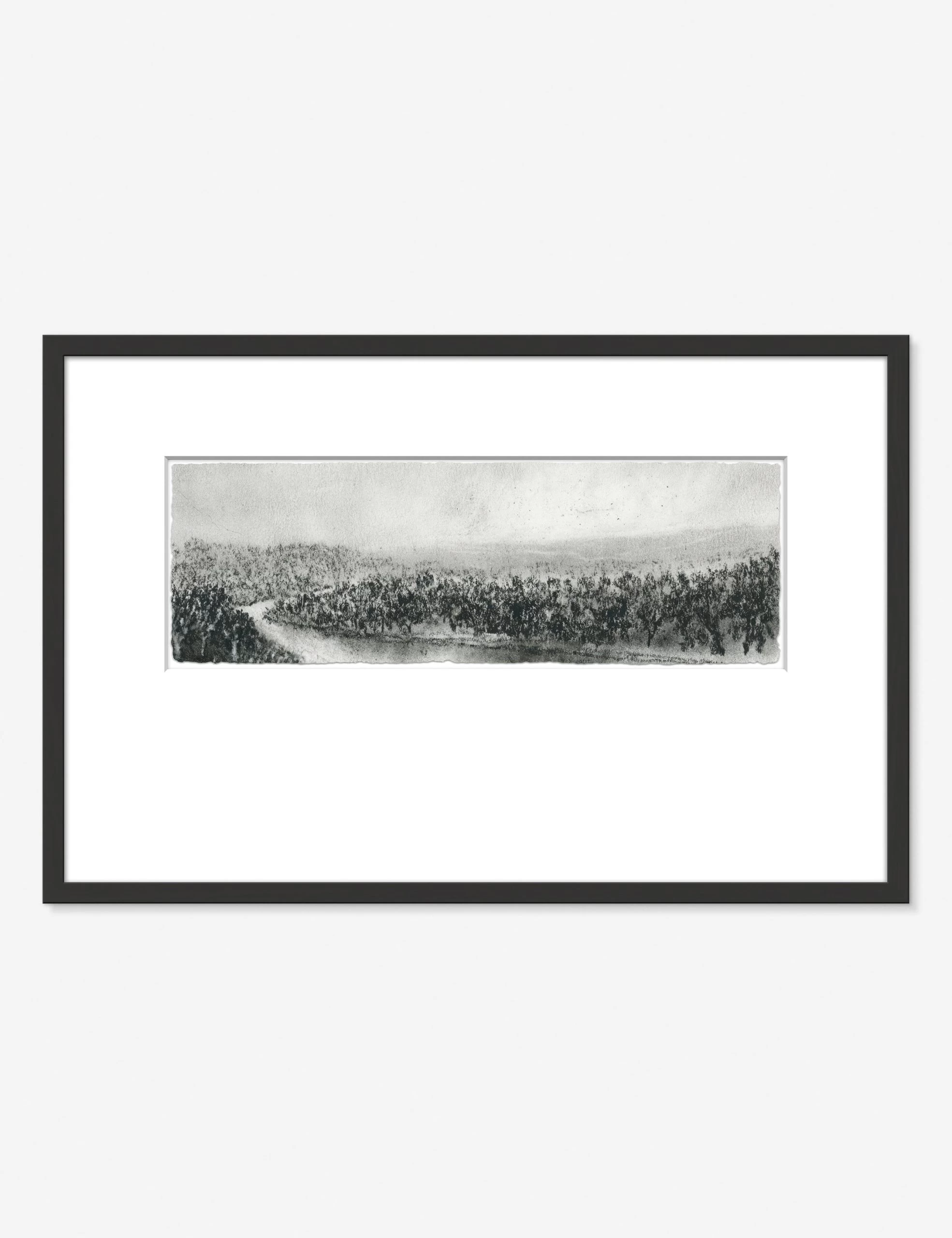 A countryside scene is rendered with subtle detail in this charcoal wall art by Aileen Fitzgerald. The muted tones complement the impressionist style offering a serene addition to any wall decor. This piece is a great way to bring a touch of nature into a bedroom or home office.