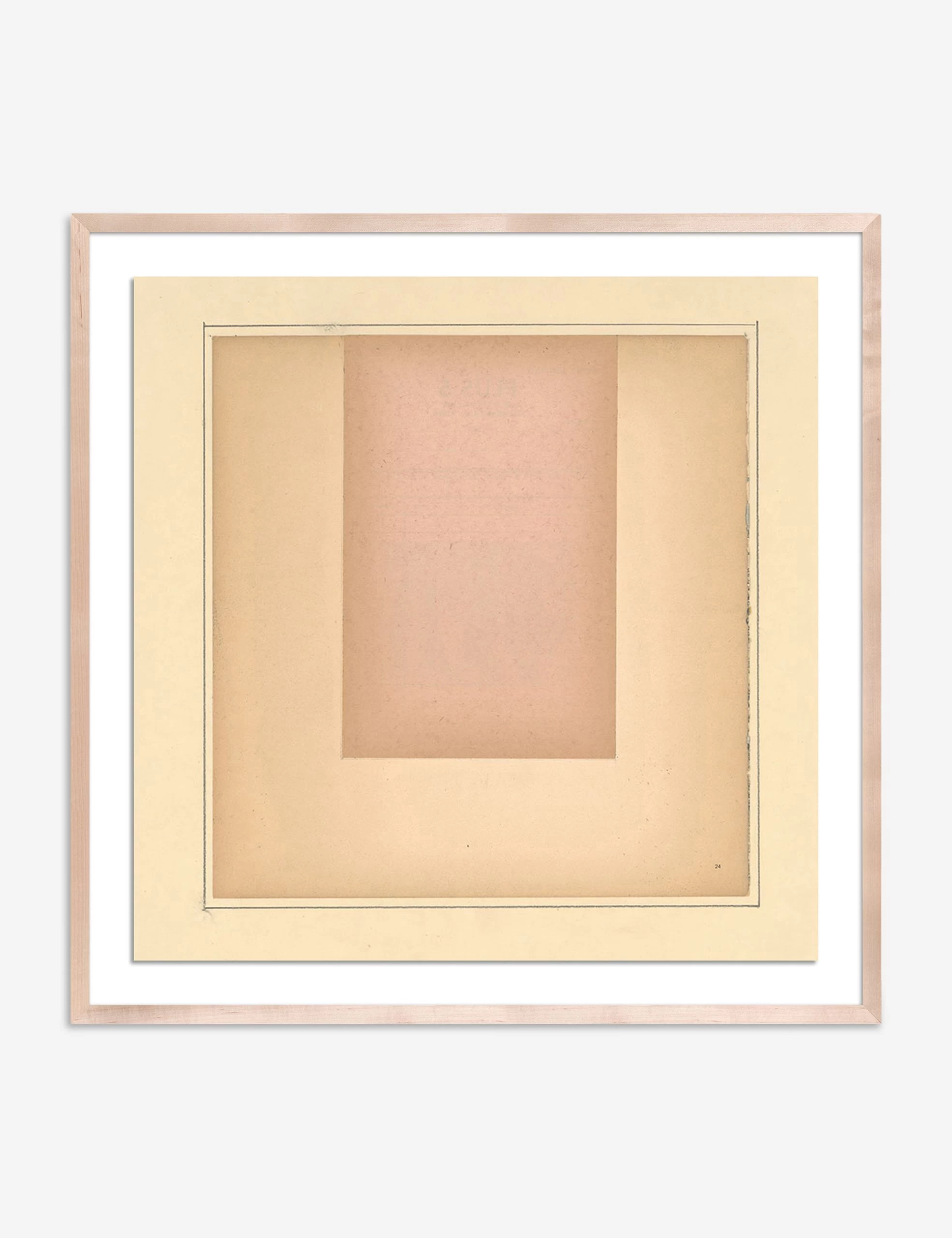 Amy Berlin transforms aged book pages and other found materials into unique wall art collages, balancing precise lines with marks of the mixed media process. Blushing tones sit nested in a crisp composition in this abstract piece. We love the warm palette for a soft, uplifting addition to modern wall decor.