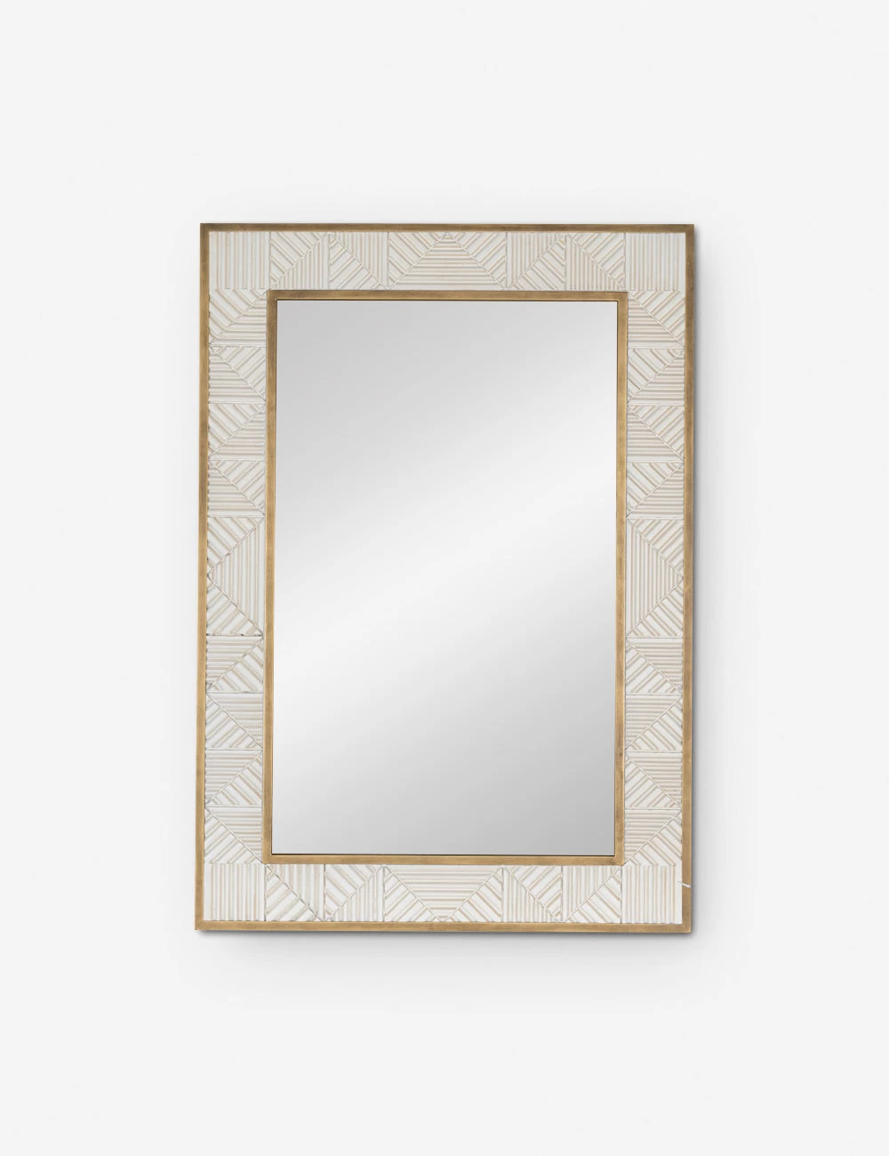 Transform your wall decor with this eye-catching mirror. The burnished frame bounds decorative tiles to strike geometric appeal with textural intrigue—a truly distinctive mirror for a thoughtfully refined space.