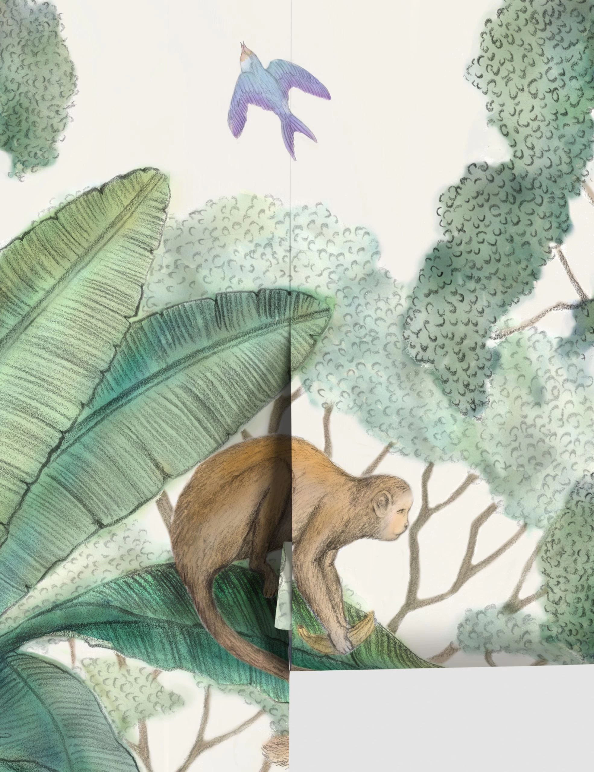 Lush and full of life, this jungle wallpaper will inspire the decor for your entire space. Perfect for a nursery needing a little imagination or an entry way needing a touch of whimsy, we love this playful, yet sophisticated wallpaper mural.