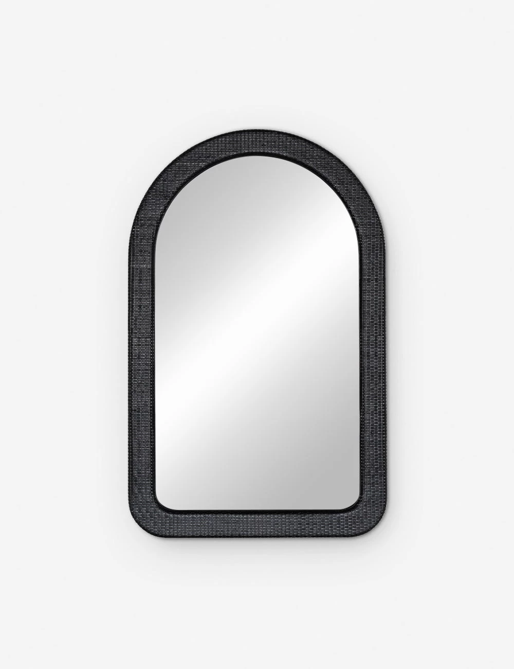 A black woven rattan frame creates textural intrigue around this arched wall mirror. We love the pairing of a natural material with a bold finish for a signature addition to a transitional space. Hang this mirror in your entryway or a small-space lounge to open up the room with an architectural edge.