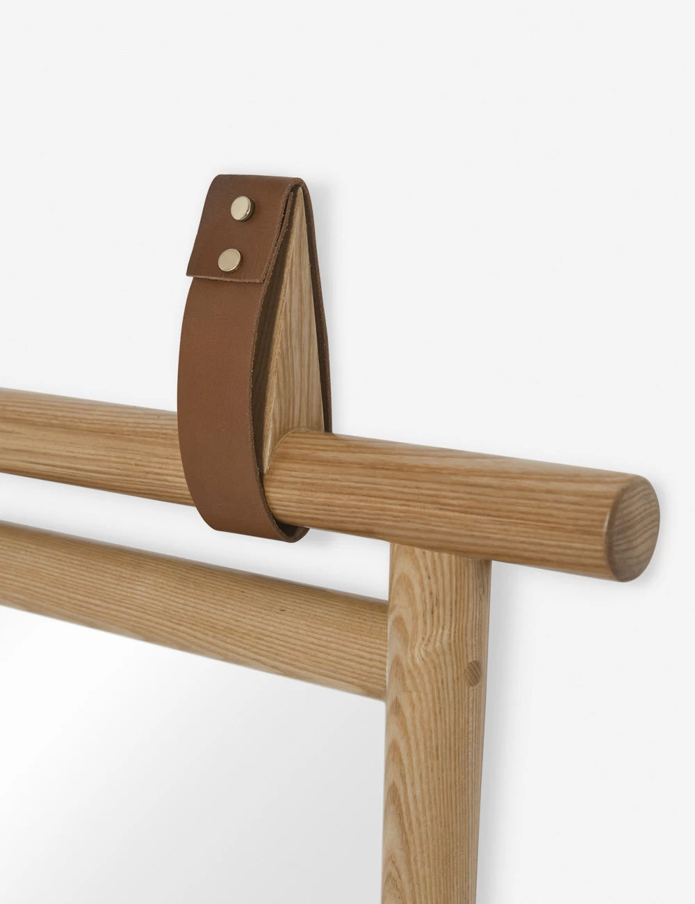 A light natural finish highlights softly rounded lines and a natural grain texture to imbue this wall mirror with a rustic yet modern tone. The carved ash wood frame is fitted with metal-studded leather straps to offer a mixed material appeal for textural character and fresh dimension in any organically inspired space. Pairing timeless materials with an on-trend design, this wood frame mirror is an exclusive Lulu and Georgia design.