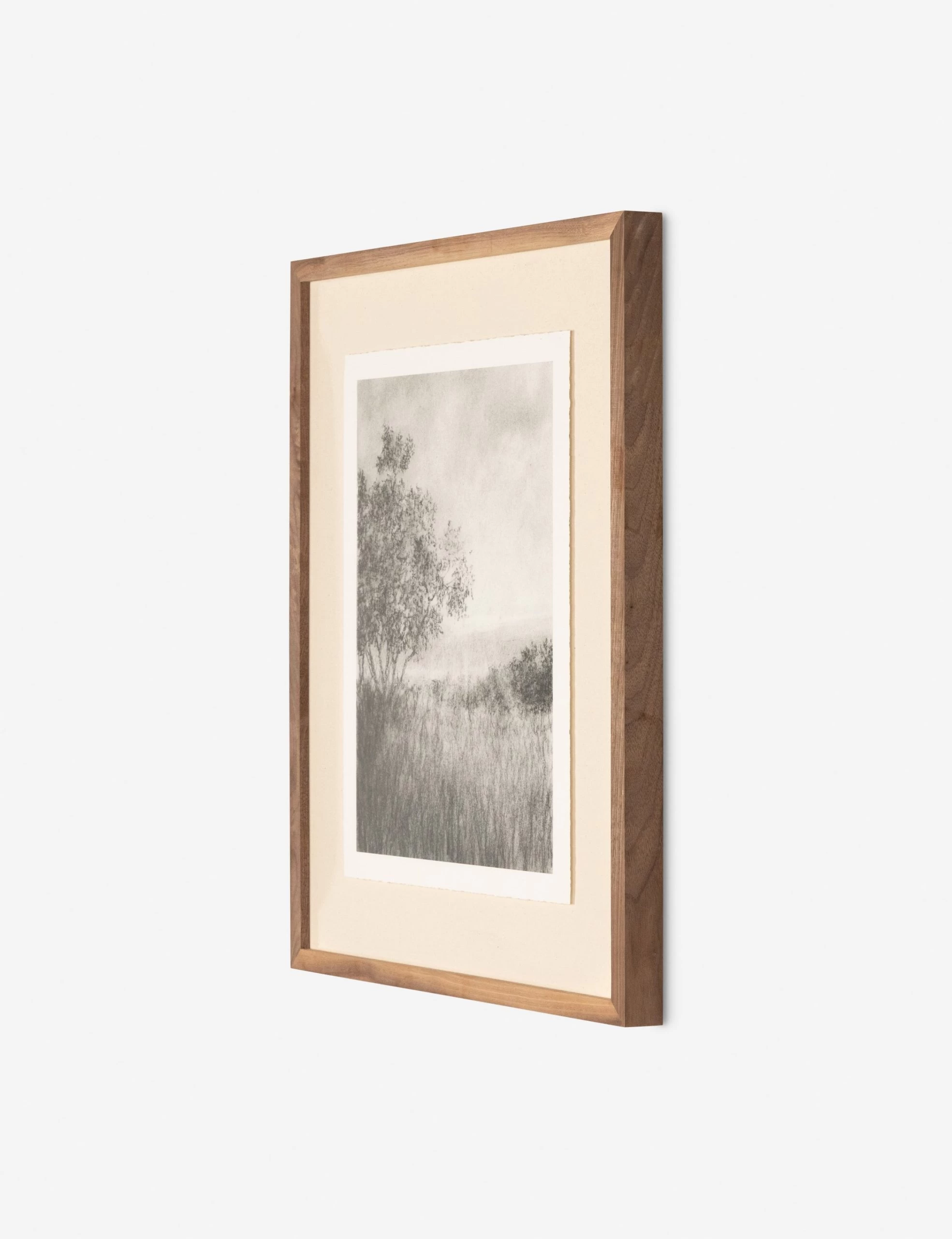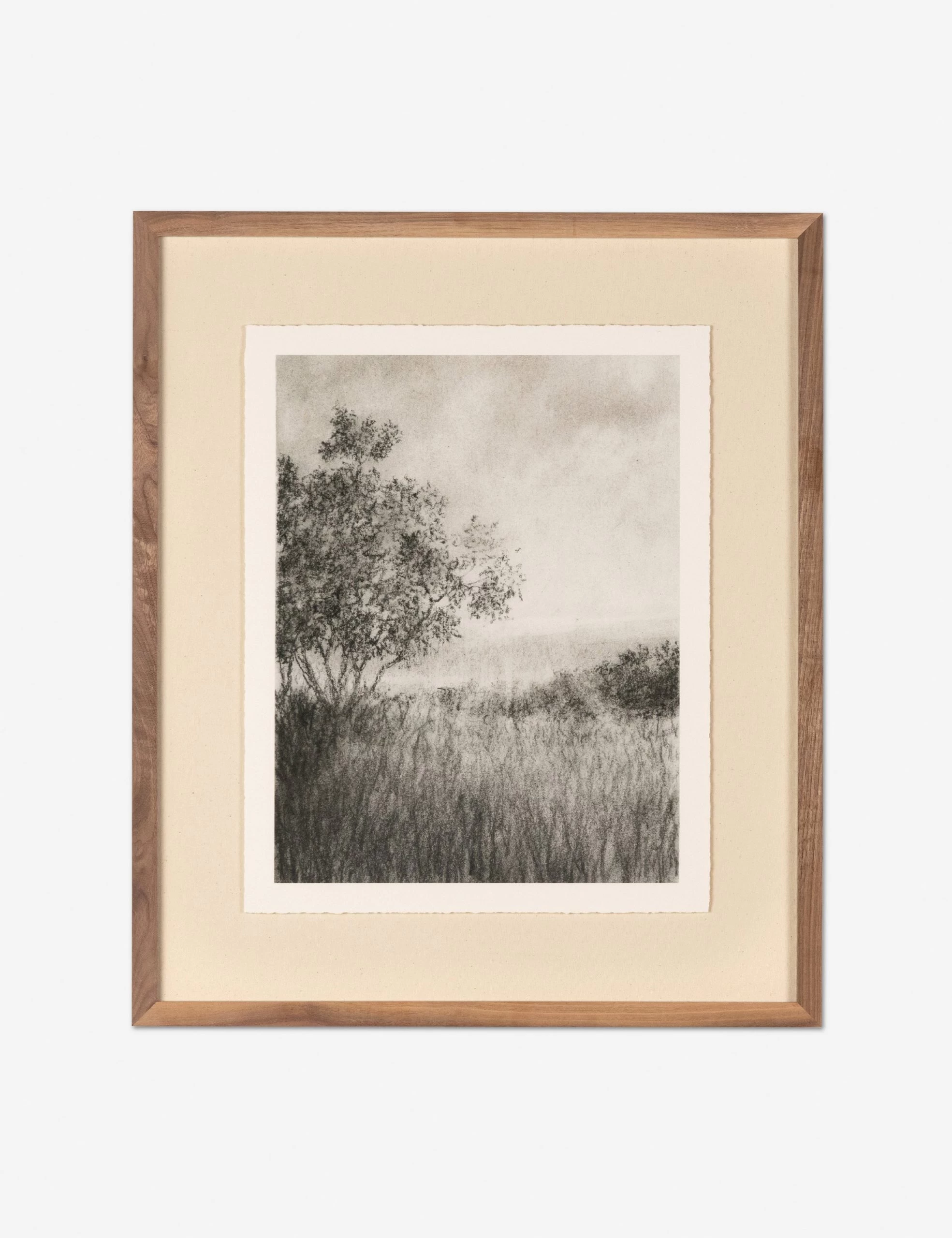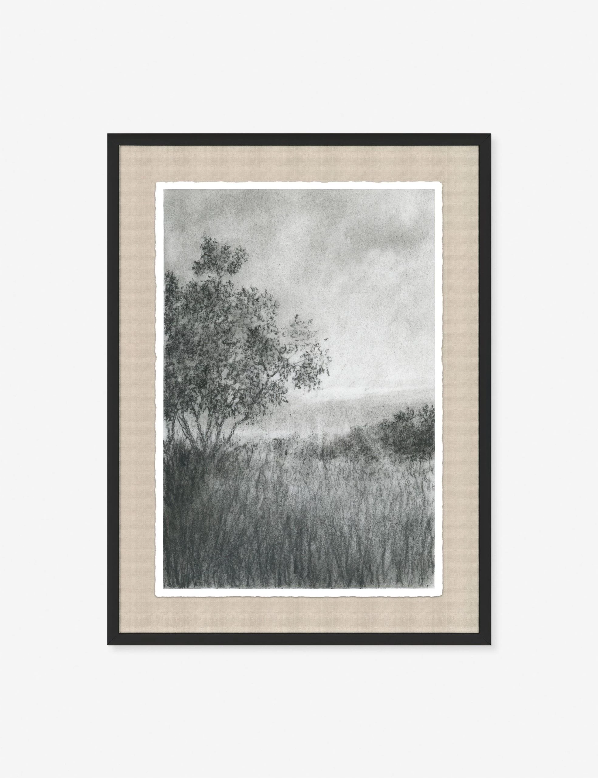 Aileen Fitzgerald captures the play of light over an atmospheric landscape in this impressionistic wall art series. With its intricate natural scenery and muted tones, this charcoal drawing offers the perfect finishing touch for transitional wall decor.