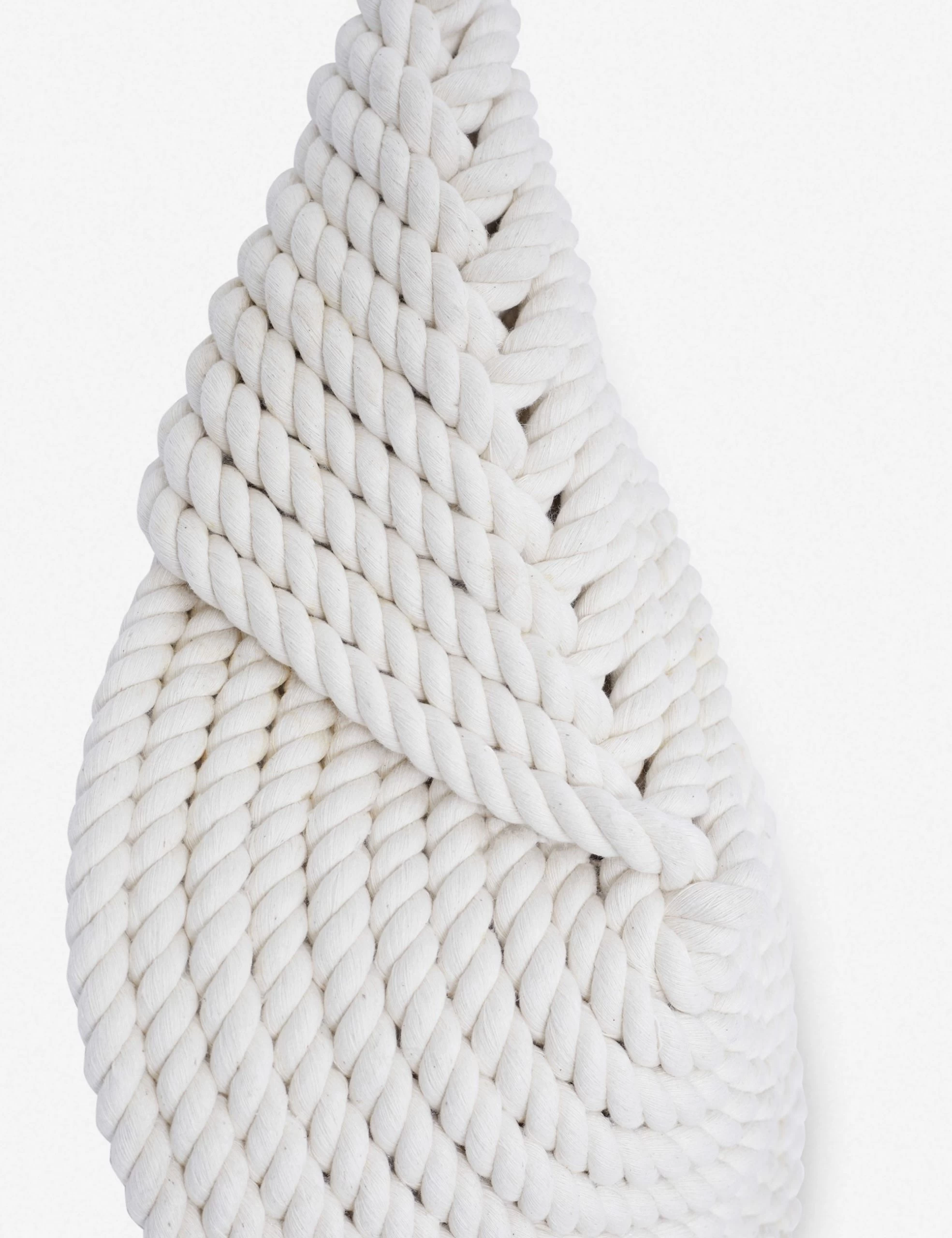 Based in Cedar Rapids, Iowa, designer Candice Luter creates one-of-a-kind wall art using reclaimed wood and textiles. This fiber art for walls is woven from soft cotton rope into an abstract design, dip-dyed, then paired with a spalted maple accent knob to hang onto the wall. Its narrower design is perfect for an entryway or transitional spaces.
