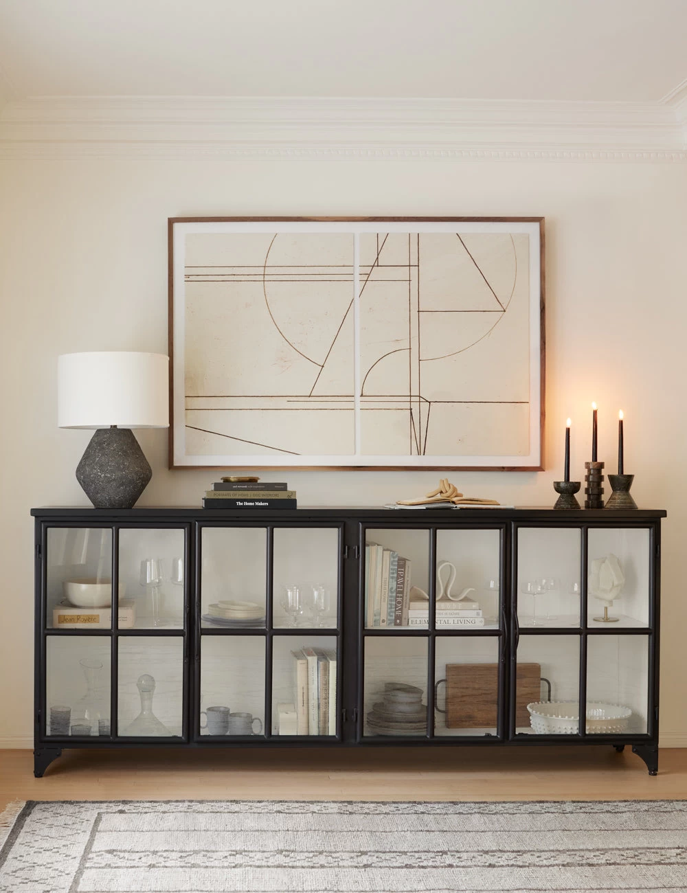 Artist Dan Hobday’s abstract wall artwork is informed by notes of modernism and minimalism. In this diptych wall art piece, a geometric linework arrangement creates a sense of movement and balance perfect for a sculptural space.