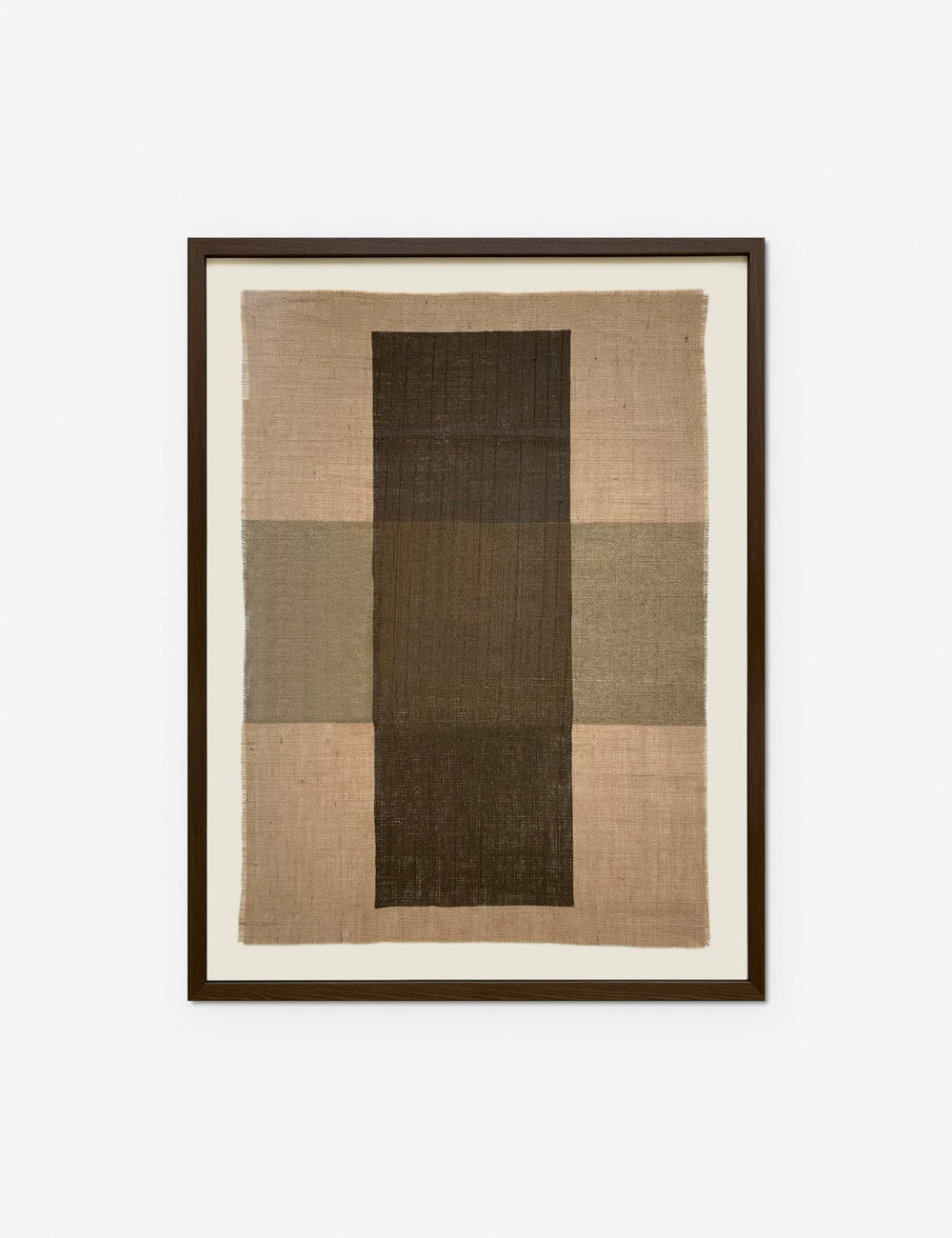 Artisan appeal with a modern sensibility sets the tone in this textile wall art element featuring a two-toned cross design screen printed on woven burlap fabric. The piece floats in a Danish walnut frame offering textural depth and impact for richly layered wall decor.