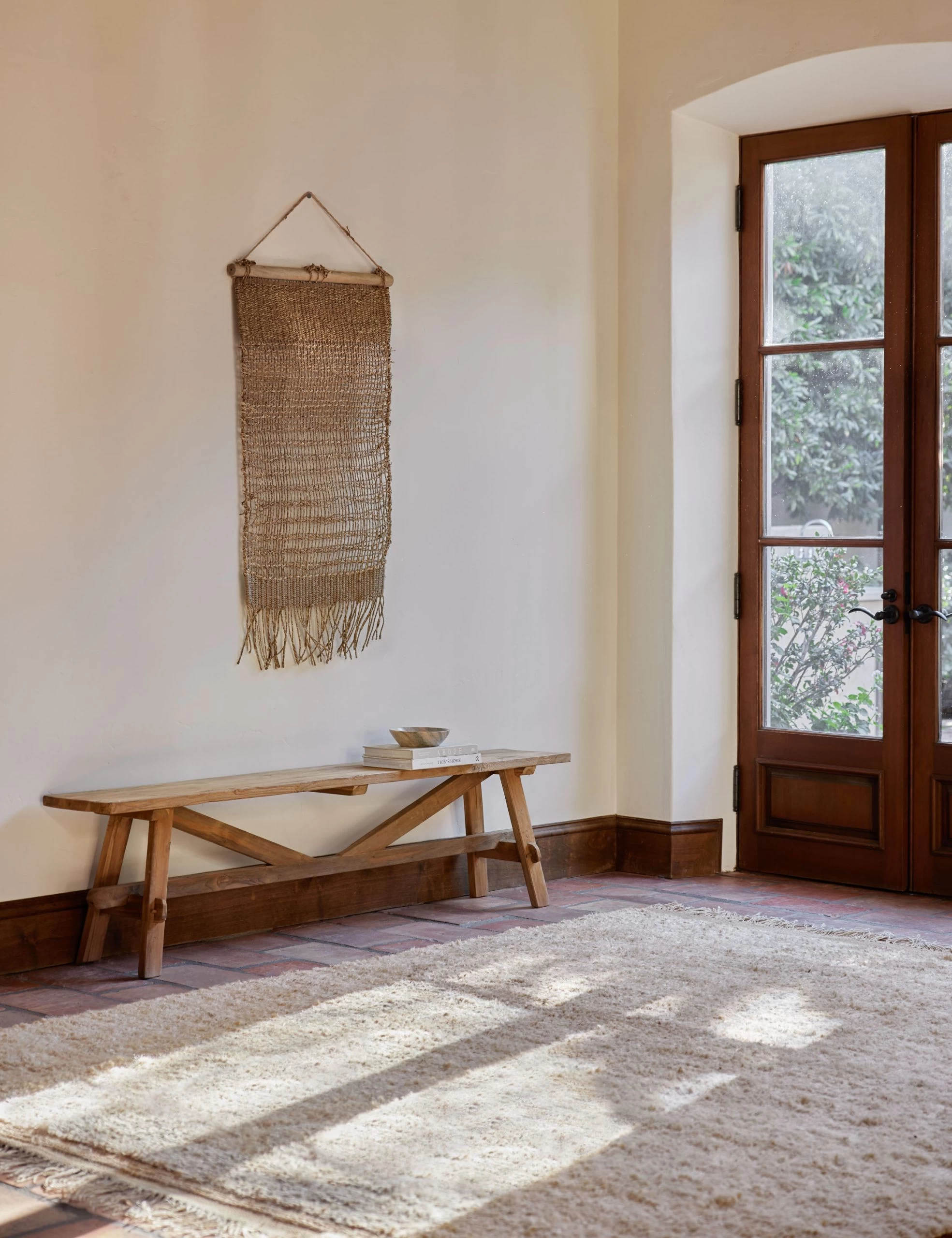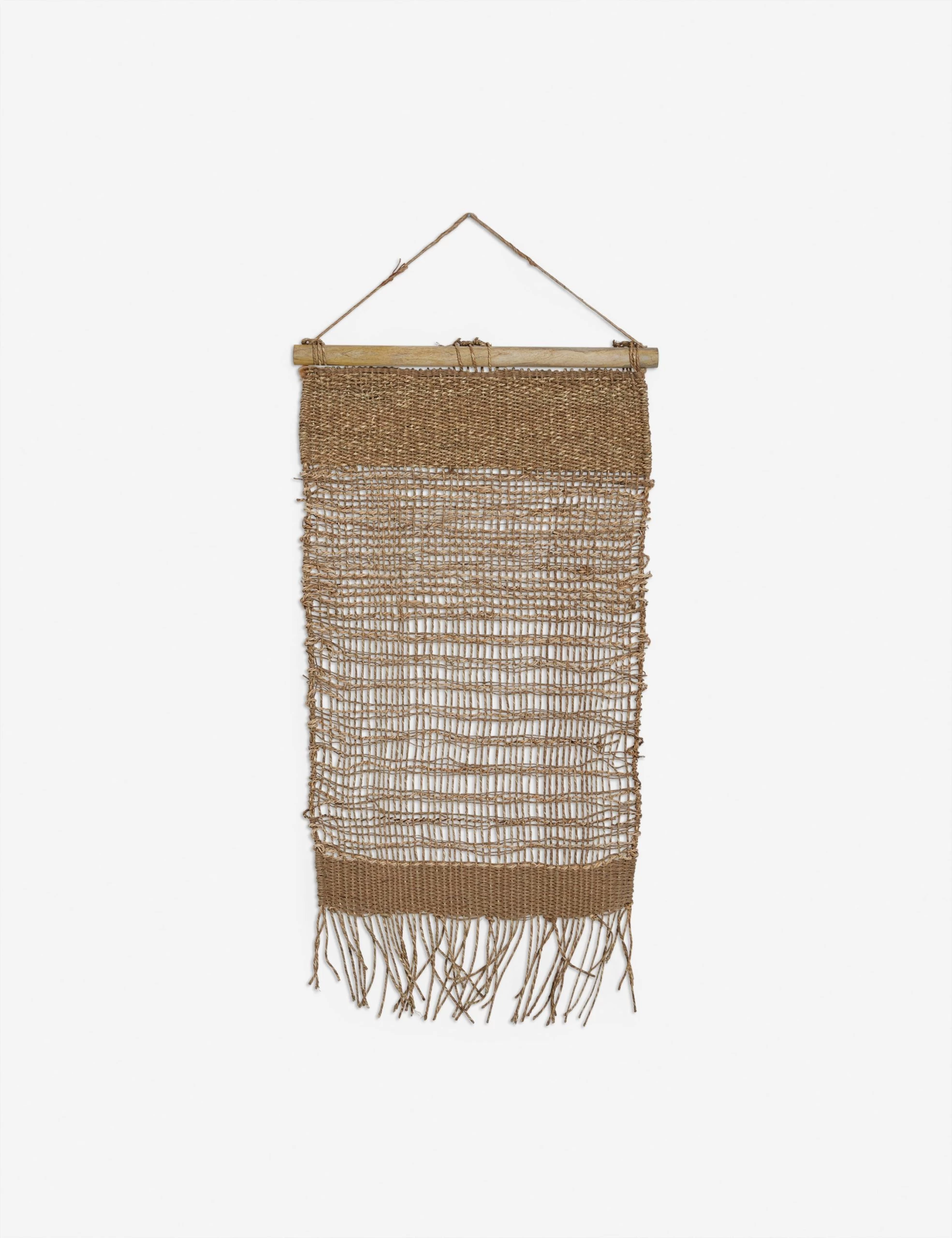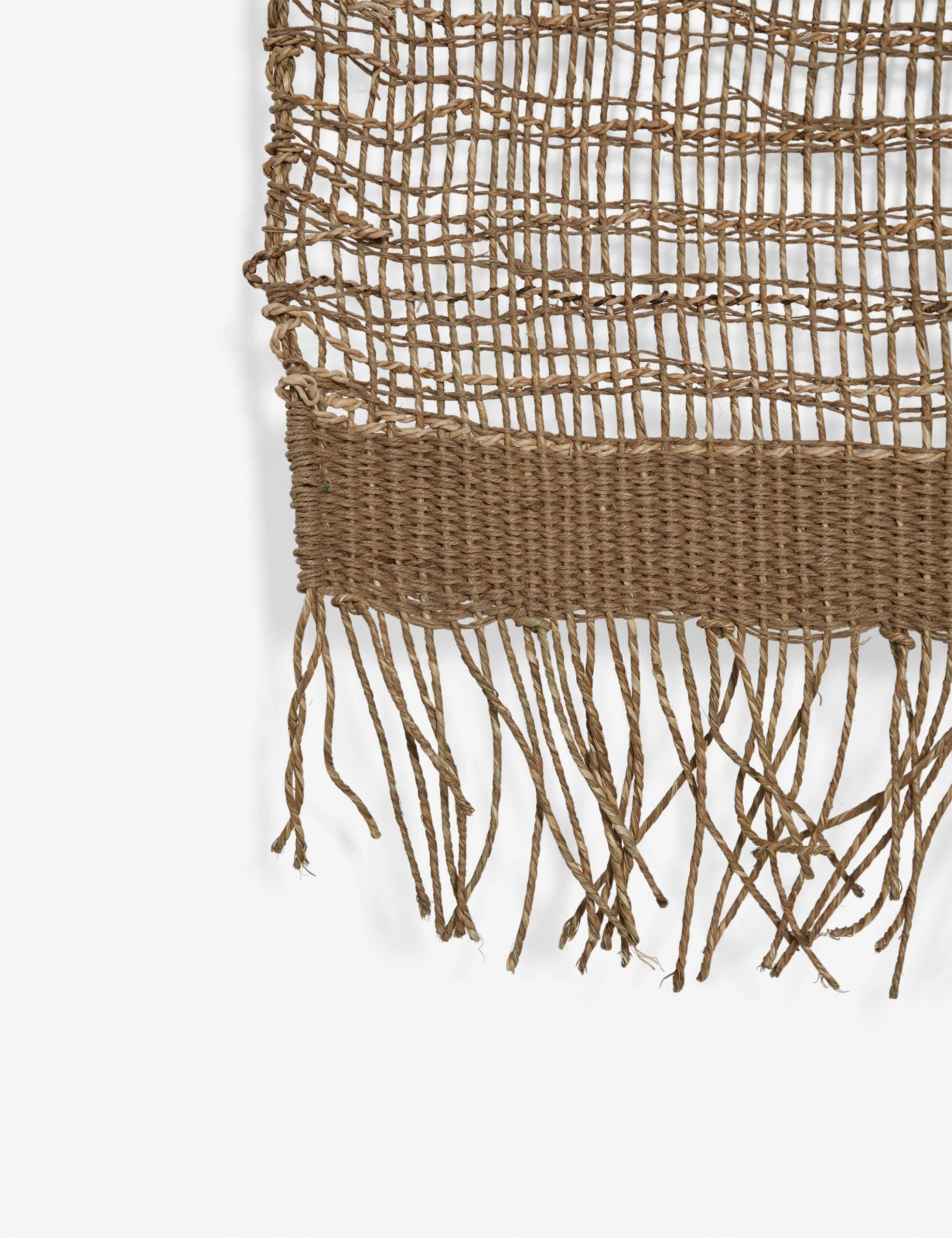 Woven with natural jute and hemp fibers this wall hanging is a meditation on organic elegance. Its broad design will instantly add a rich tactile presence to your wall decor.