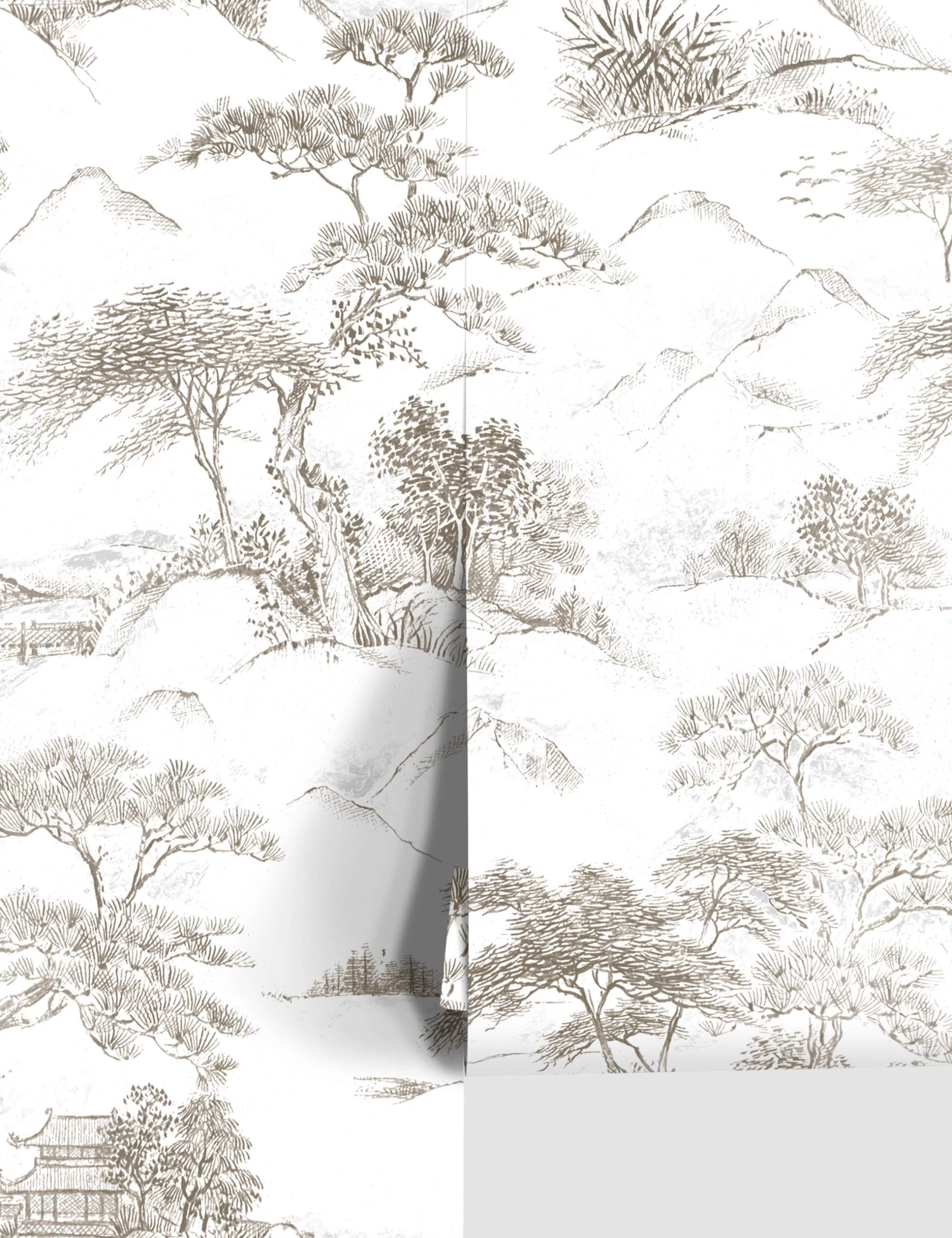 Inspired by traditional East Asian art, this paper wall print layers in an intricate lanscape scene. Its illustrated design and artful shading creates a visually captivating piece. Instantly transform your walls with peel + stick wallpaper—it’s easy to install and provides a mess- and residue-free removal.
