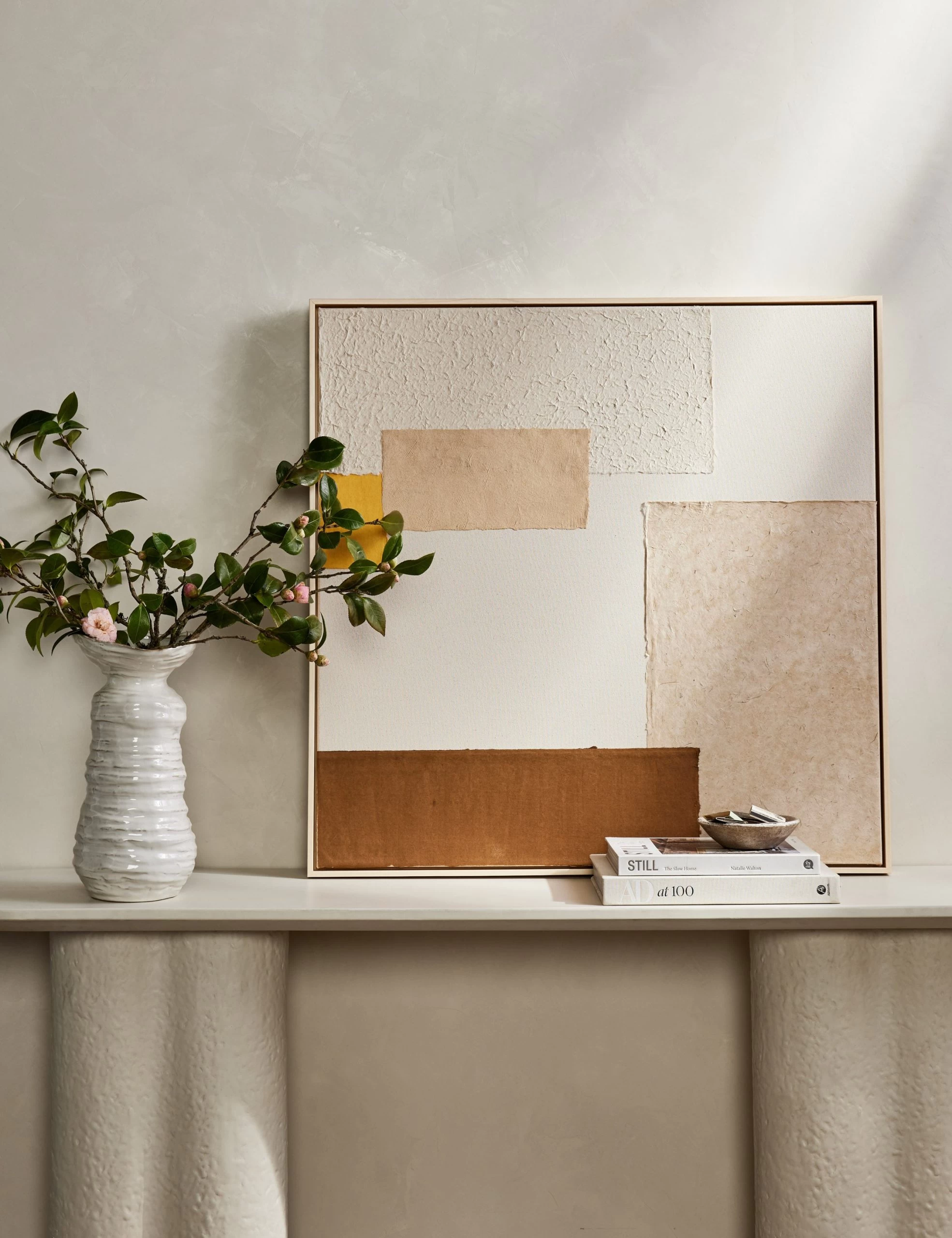 Visual Contrast is a Los Angeles-based fine art studio that produces limited-edition runs of high-quality wall art. A member of their artist collective crafts each by hand, creating unique and timeless works. Layers of fabric and handmade paper bring depth and texture to this mixed media collage—with a touch of color to stimulate your wall decor.