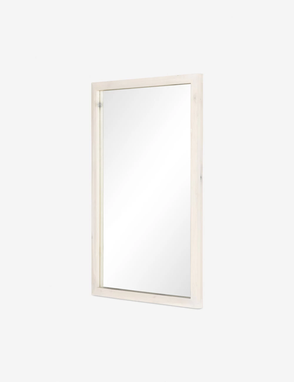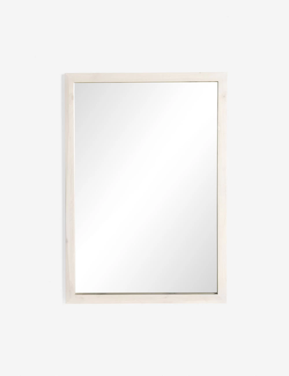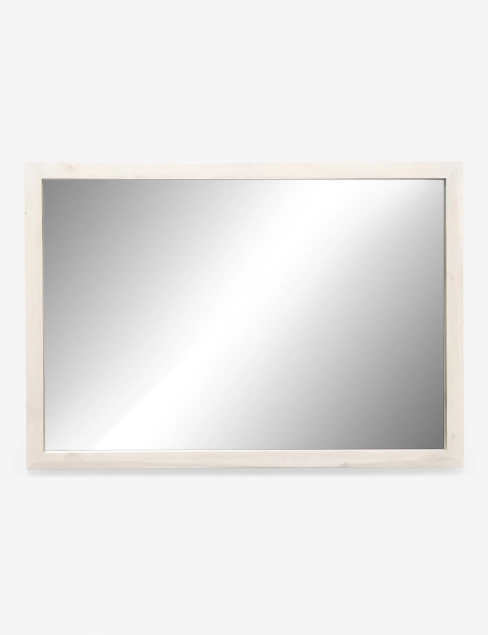 A clean wood frame with a light finish sets off this versatile mirror’s natural grain appeal. This large wall mirror can hang vertically or horizontally, offering the perfect feature to open up a transitional space with a fresh dimension.
