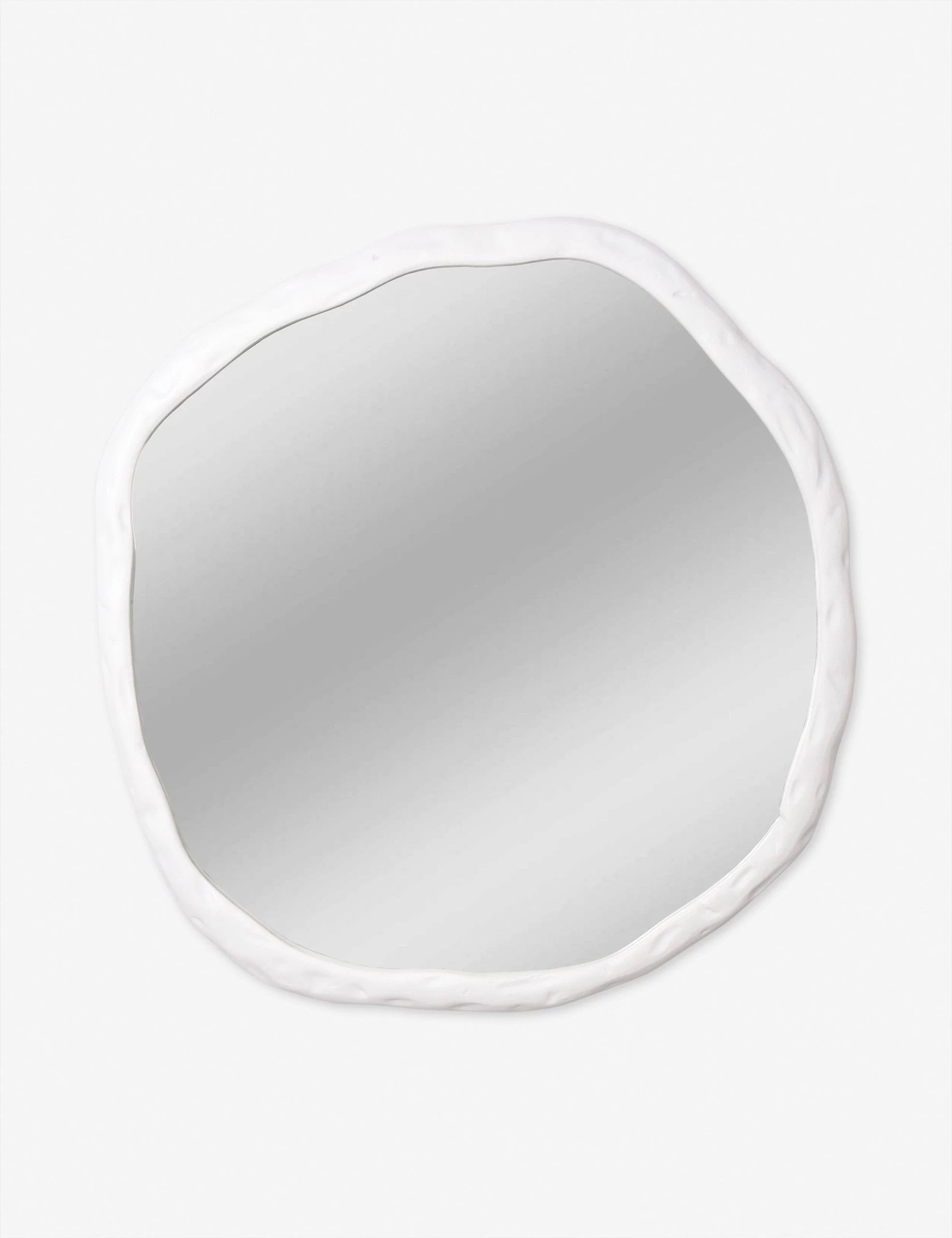 The Rogelio mirror brings a rustic luster to your walls with its organic shape and textural metal frame. We love this round wall mirror for a bright addition to an edited space that feels natural yet refined.