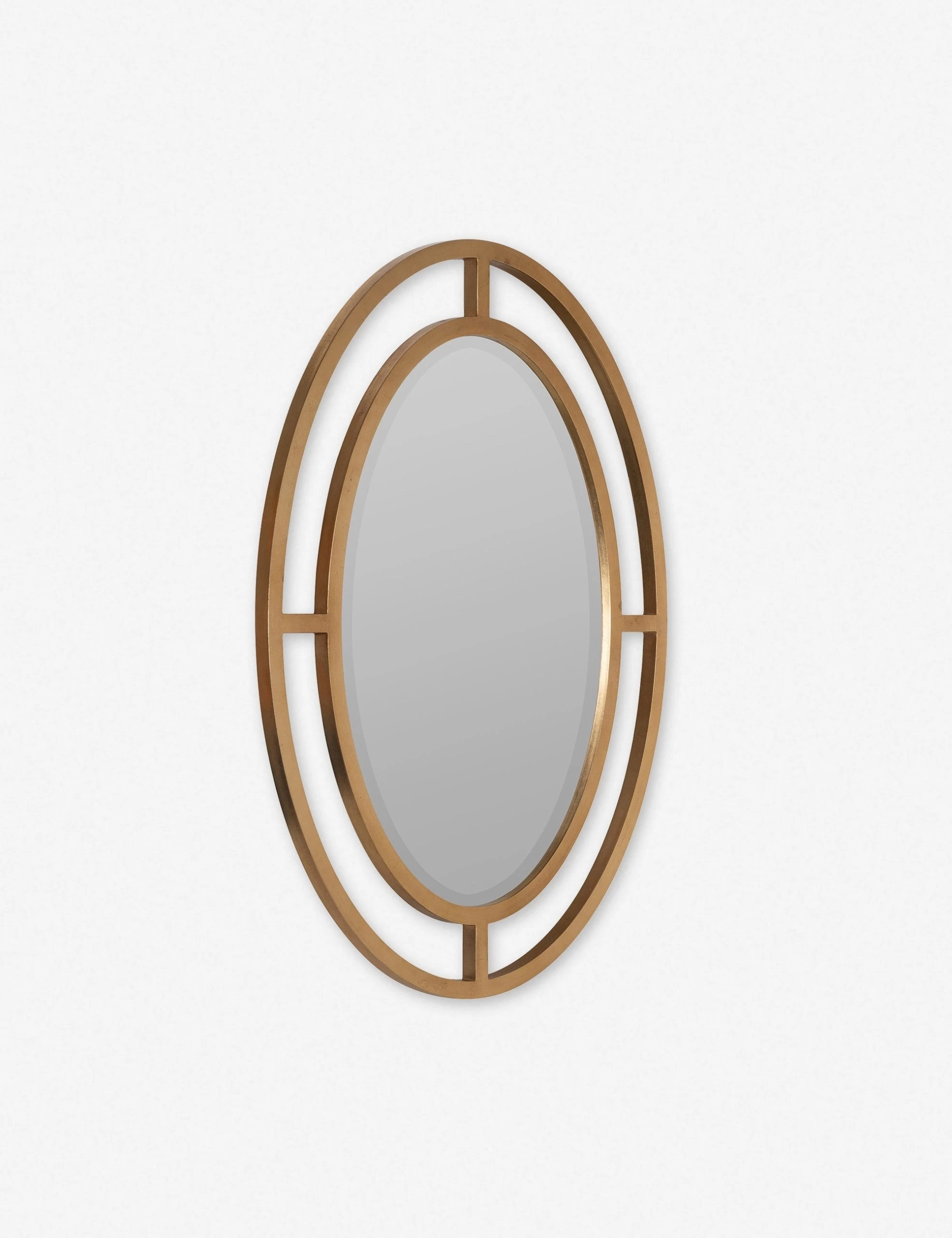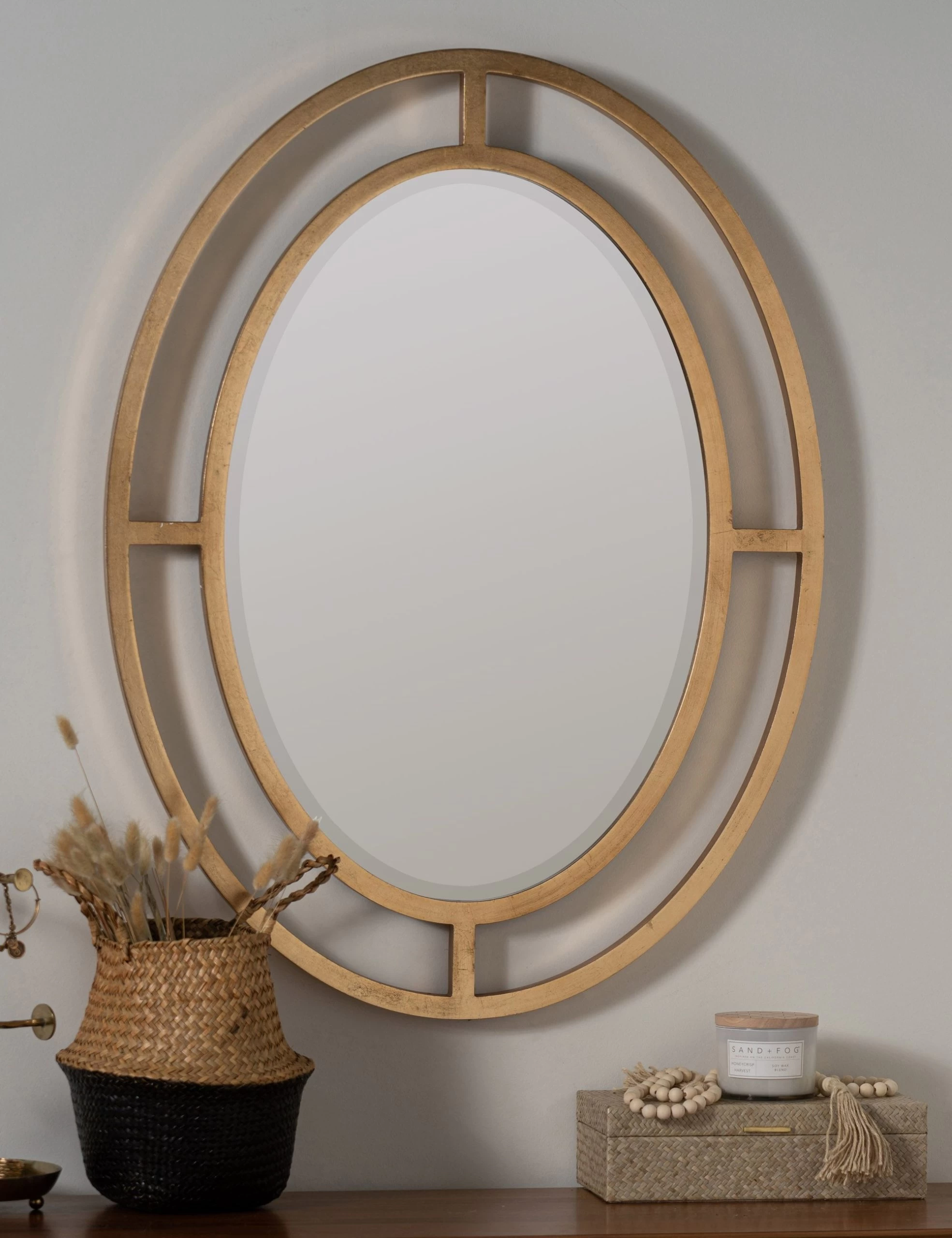 In a timeless gold finish, this oval wall mirror features a tailored, striking design that would elevate the look of your living space, bedroom, or hallway. This framed mirror’s oval shape is ideal for rooms with limited wall space, and can help to make a room appear brighter and bigger by adding depth and dimension.