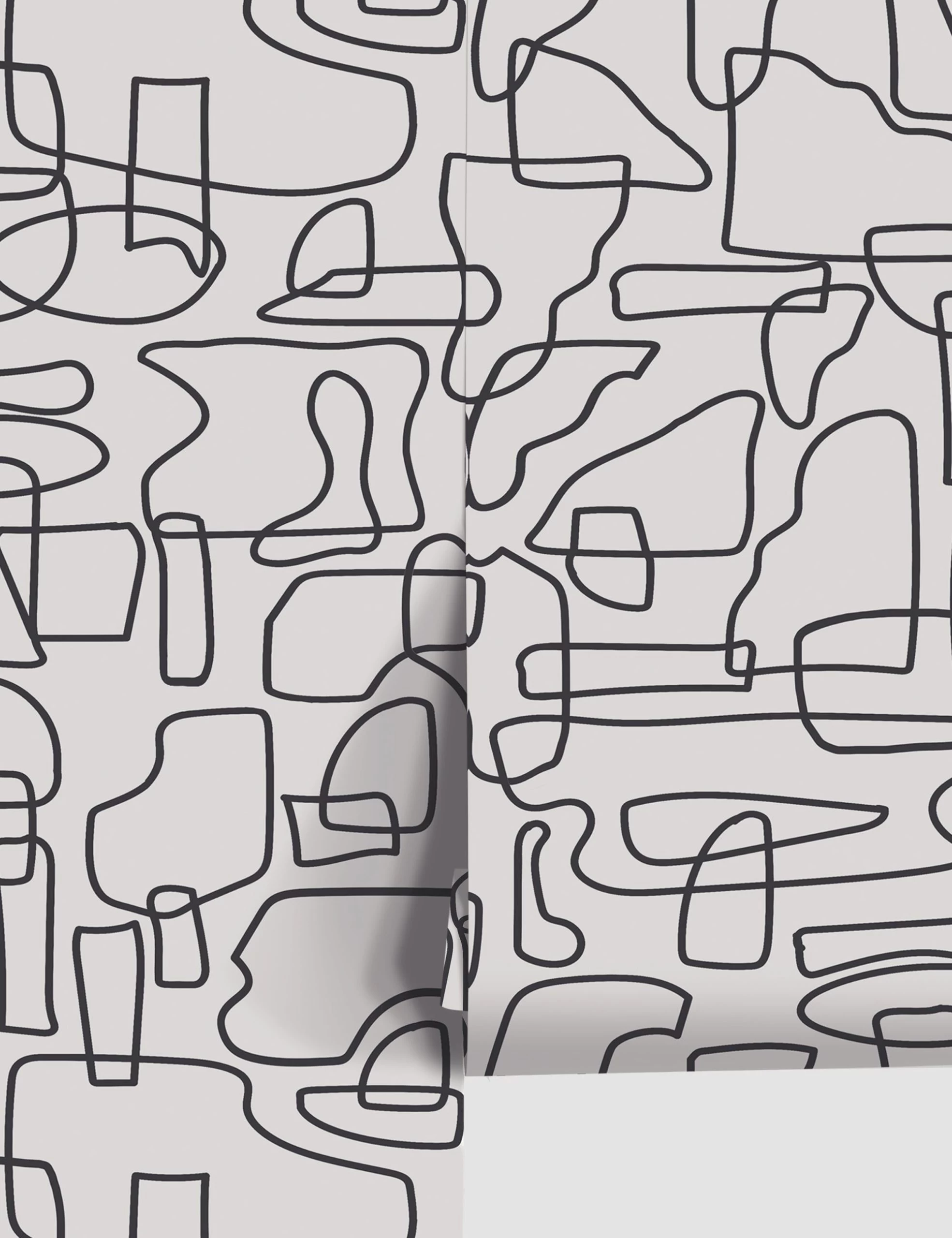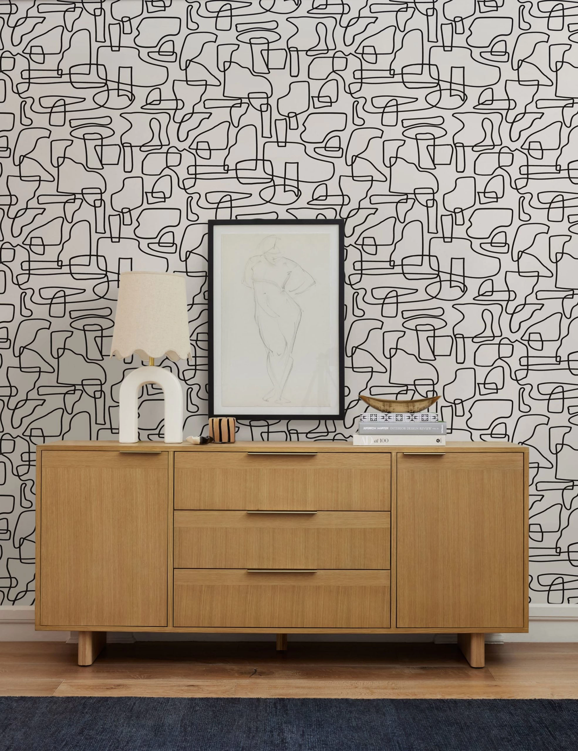 Bring a fresh edge to the room with this modern wallpaper design. In the style of abstract line art, Saunders sets the tone for a chic curation. The black-on-white minimalist palette lets you tailor the look to your decor living room to bath.