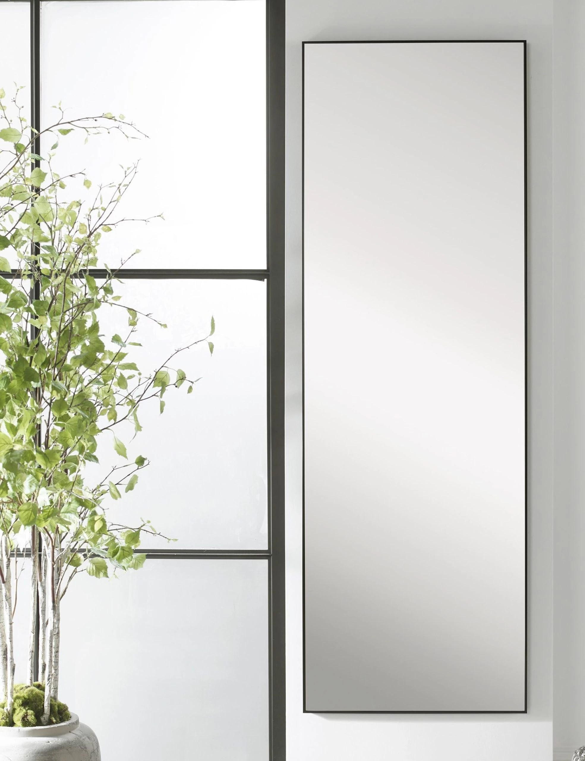 This classic rectangular floor mirror get a contemporary update with slatted cutouts on the curved frame. Lean it against the wall in your bedroom or dining room for an architectural accent piece.