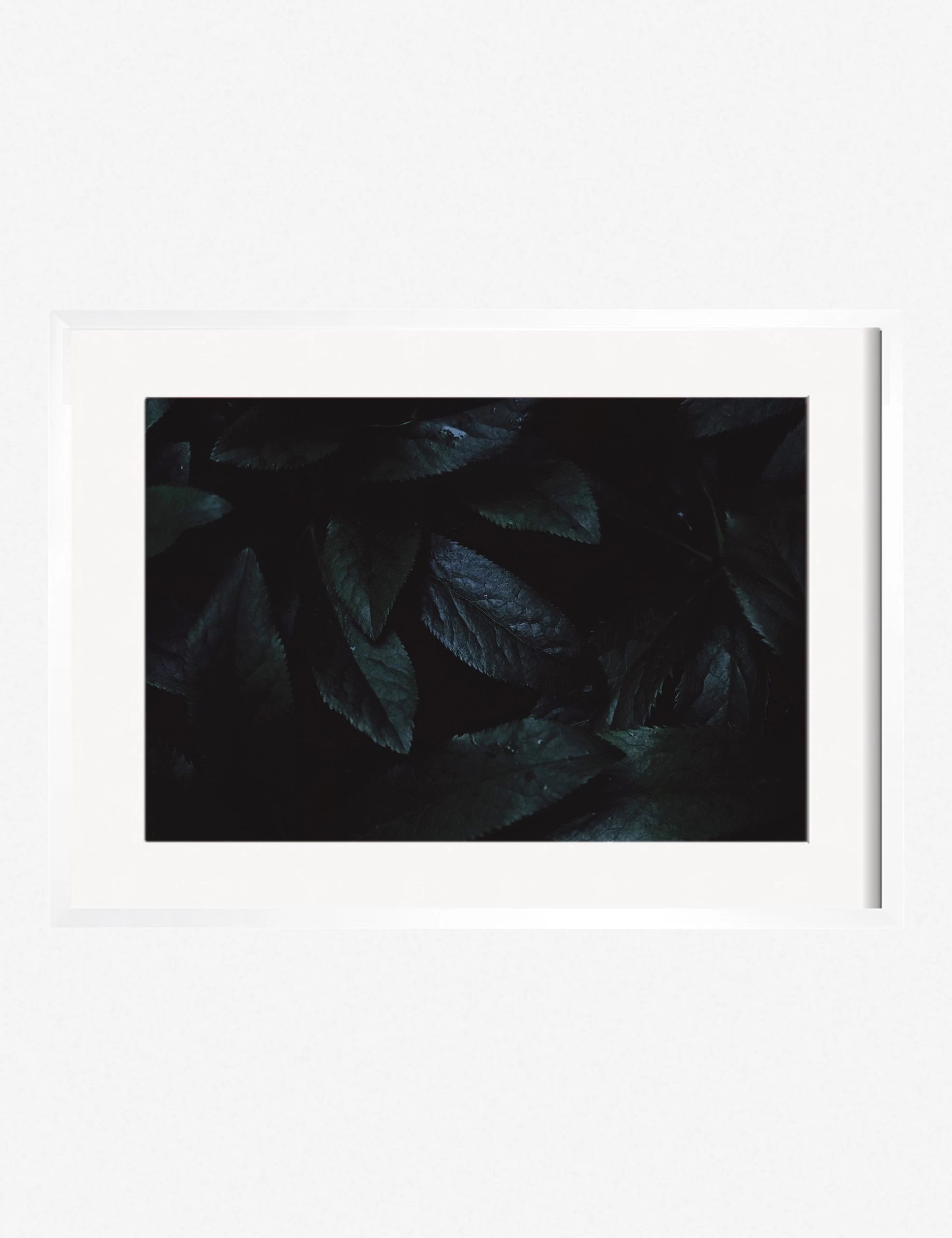 Winston-Salem-based multidisciplinary artist Ashley Johnson uses mixed media to create her staged portraits. Overcast light shadows the perfect symmetry of plant structures, lingering rain droplets, and the still underbrush in this botanical series. A moody depth marks the composition. This wall art print was produced using archival inks to achieve long-lasting, true-to-color richness, outstanding resolution, and an even ink lay for a stunning gallery-quality addition to your art wall decor.