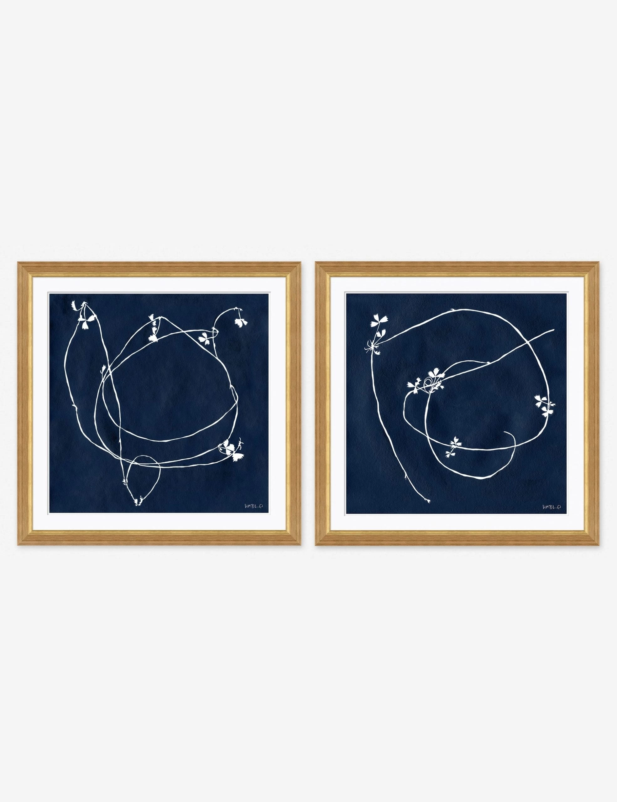 This wall art print set, depicting strawberry fruit vines, is the perfect finishing touch for any room in your home. The delicate white lines and deep blue ground bring a minimalist yet feminine feel to your wall decor. Hang together for a diptych inspired look, or place them within a gallery art wall.
