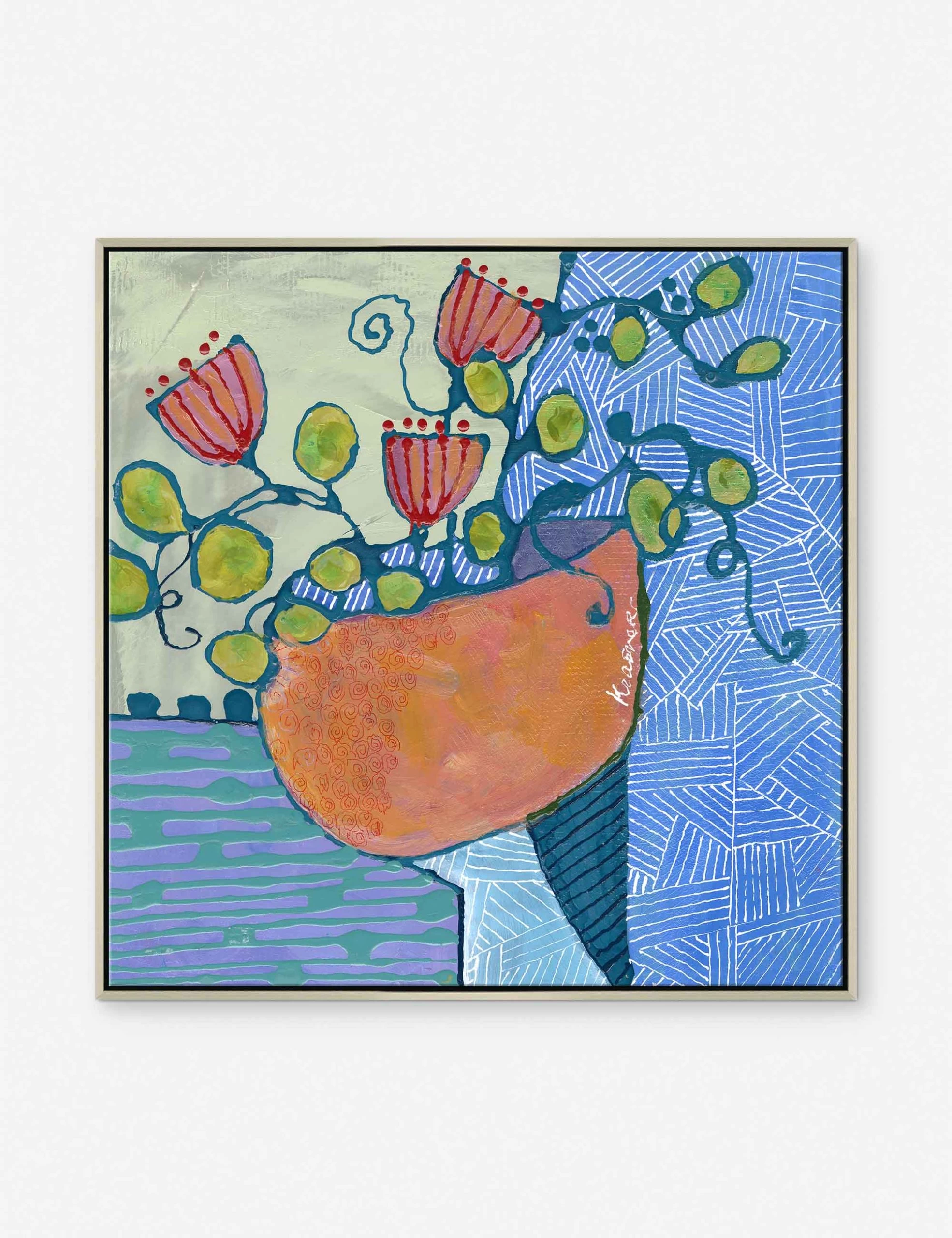 This wall art print brings a bit of the whimsical and layered approach that artist Jill Krasner is known for. Playing with color and pattern, you can still see the subtle layer of paint from the original mixed media painting. Style this large-scale square wall artwork above your sofa or sideboard.