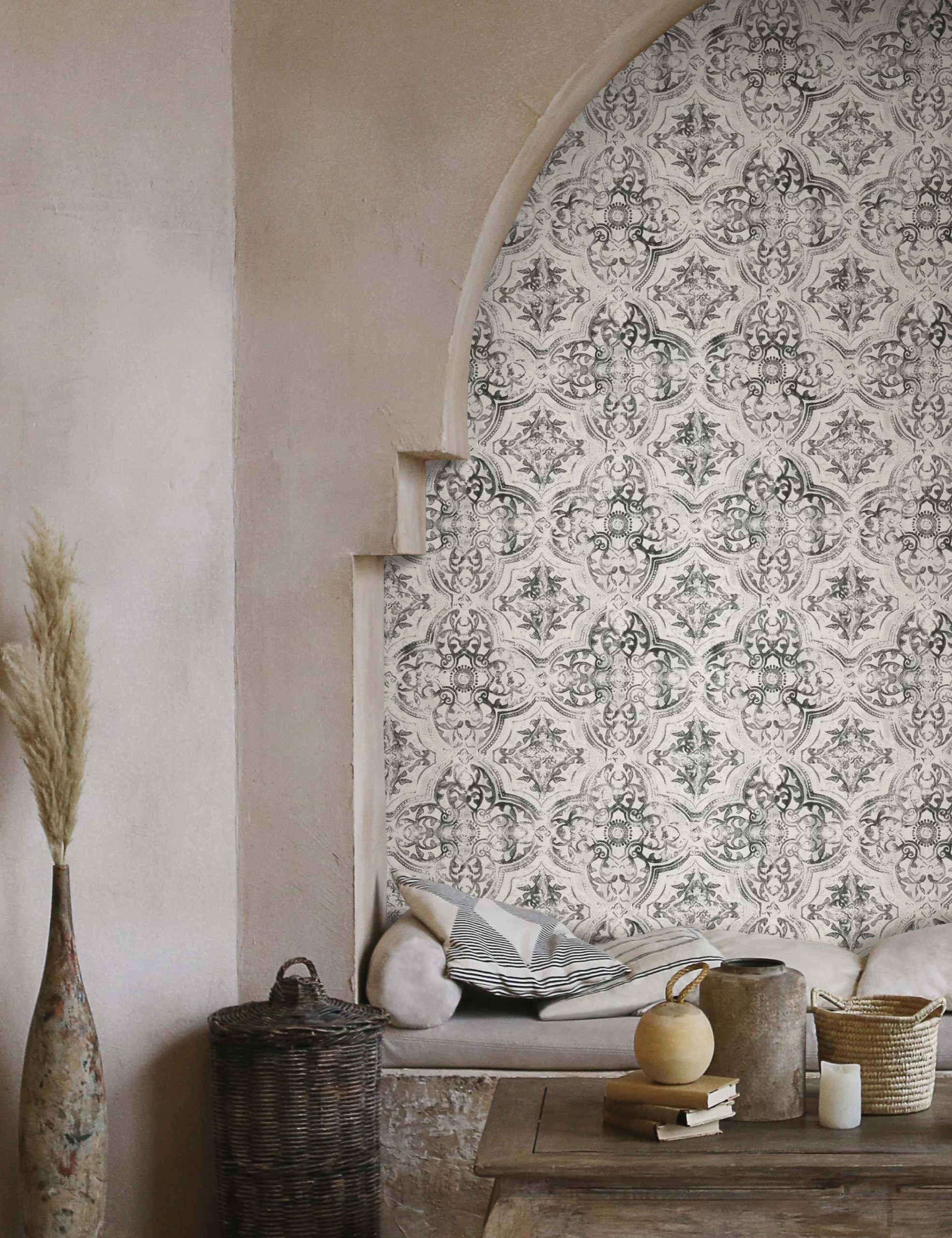 If you’re looking for a visually striking, geometric wallpaper that’s set for timeless appeal, Turia has you covered. A medallion motif brings traditional charm to this ornate home wallpaper design—making it the perfect accent wall treatment for a transitional look.