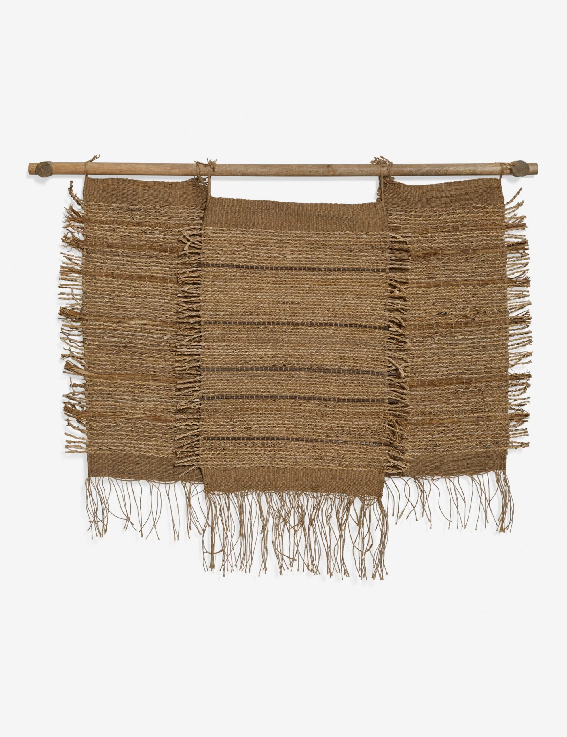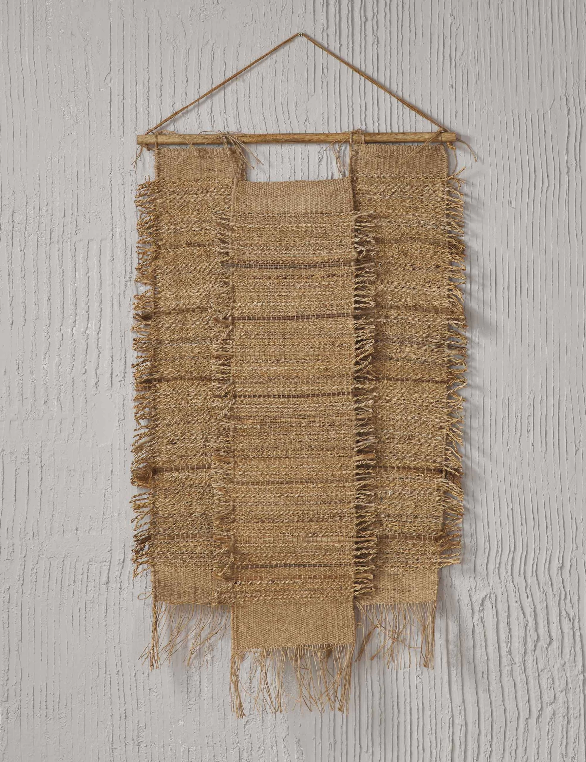 Woven with natural jute and hemp fibers, this wall hanging is the perfect textured accent for a refined space. Its broad design spreads out rather than up making this the ideal wall decor to add a significant amount of artisanal texture to a living space like a bedroom or living room.
