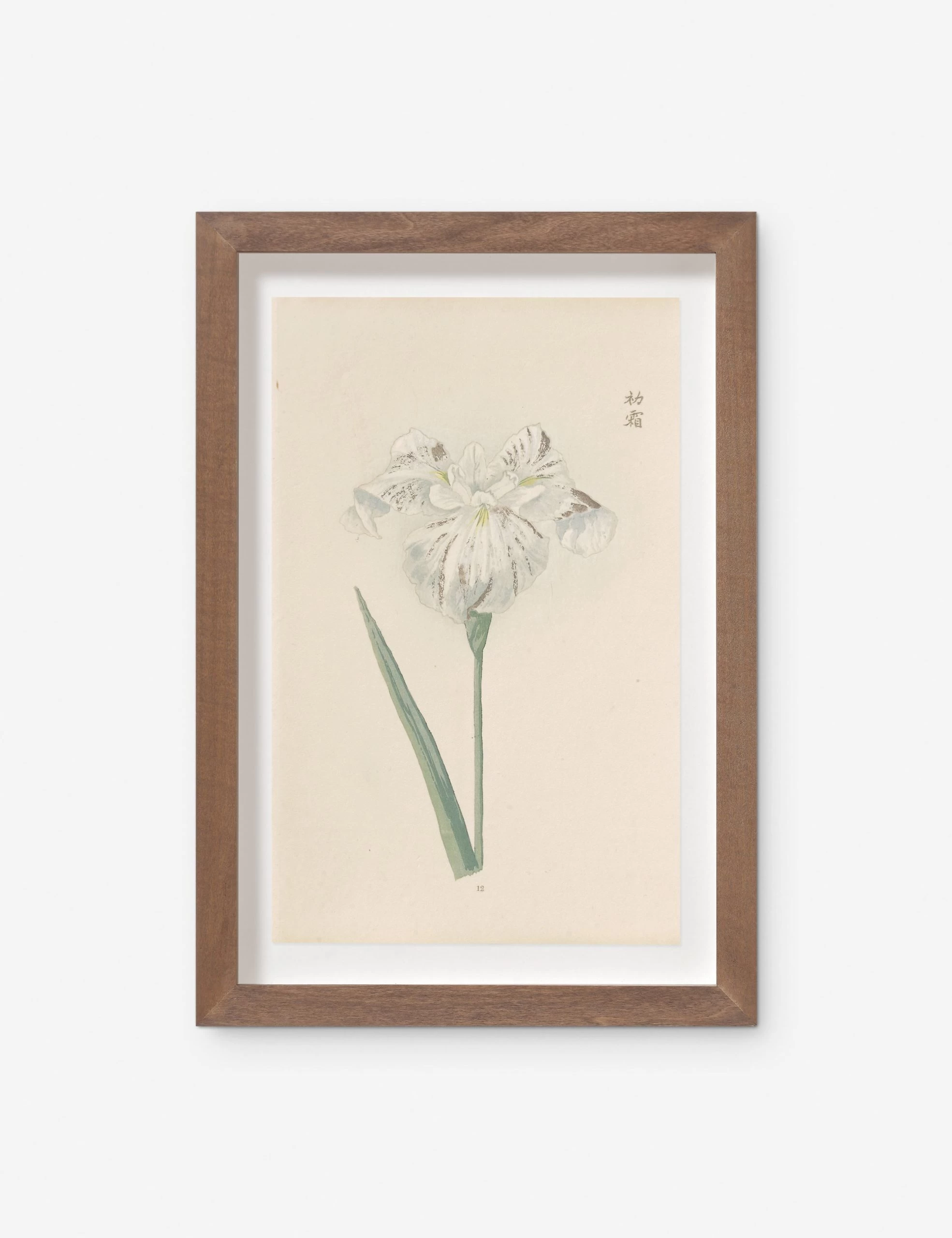 Visual Contrast is a Los Angeles-based fine art studio that produces limited-edition runs of high-quality wall art. This collection of iris paintings was painted by the Japanese botanist Miyoshi Manabu in 1921, offering a vintage touch to your wall decor. Each watercolor was painted on rice paper, adding to the delicate quality—framed in a modern walnut shadowbox and ready for any space from your home office to a bathroom or kitchen.