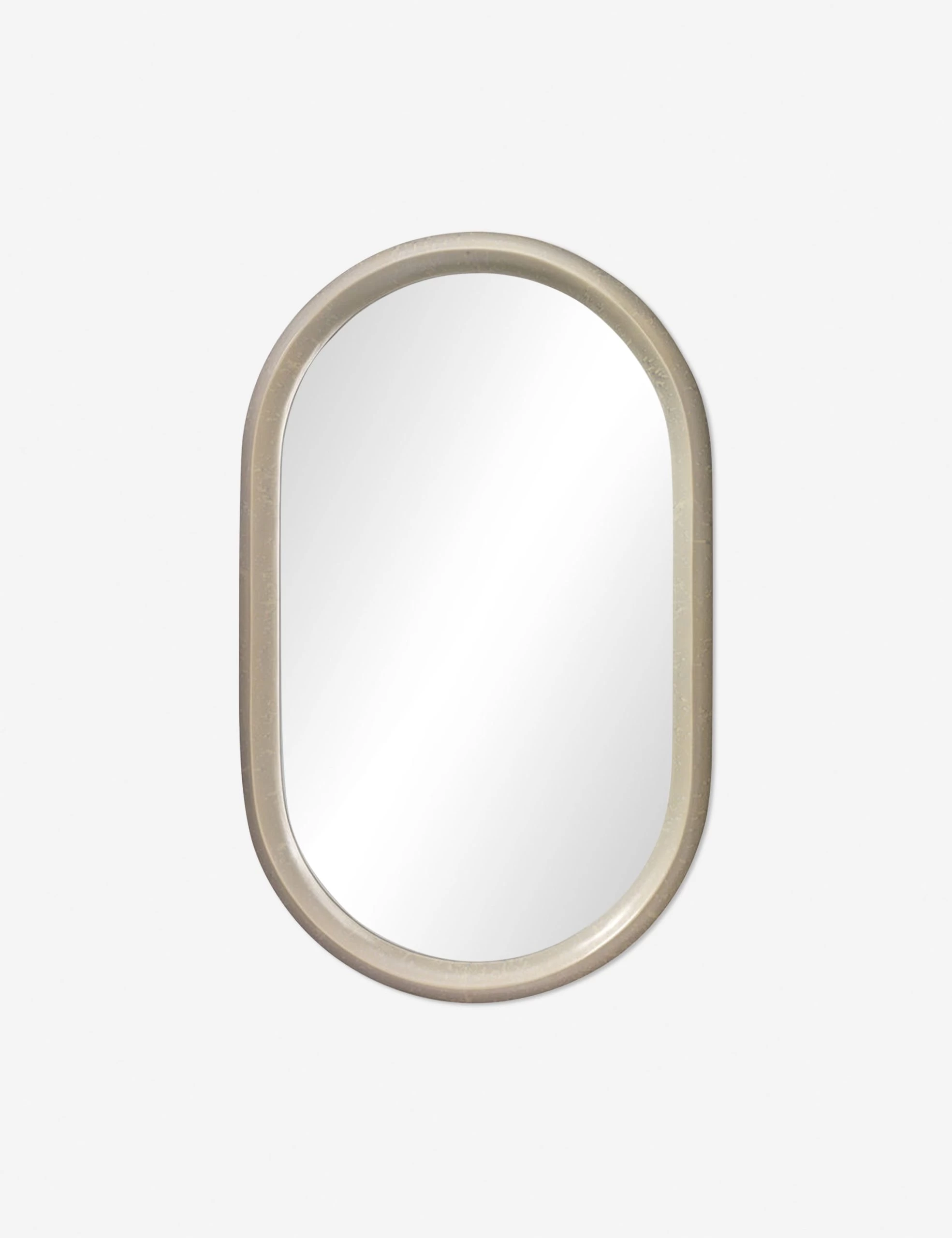 Crisp lines bring a refined edge to this stylish oval mirror. The molded frame features a polished finish creating a bright and elevating addition for a transitional look or minimalist aesthetic.