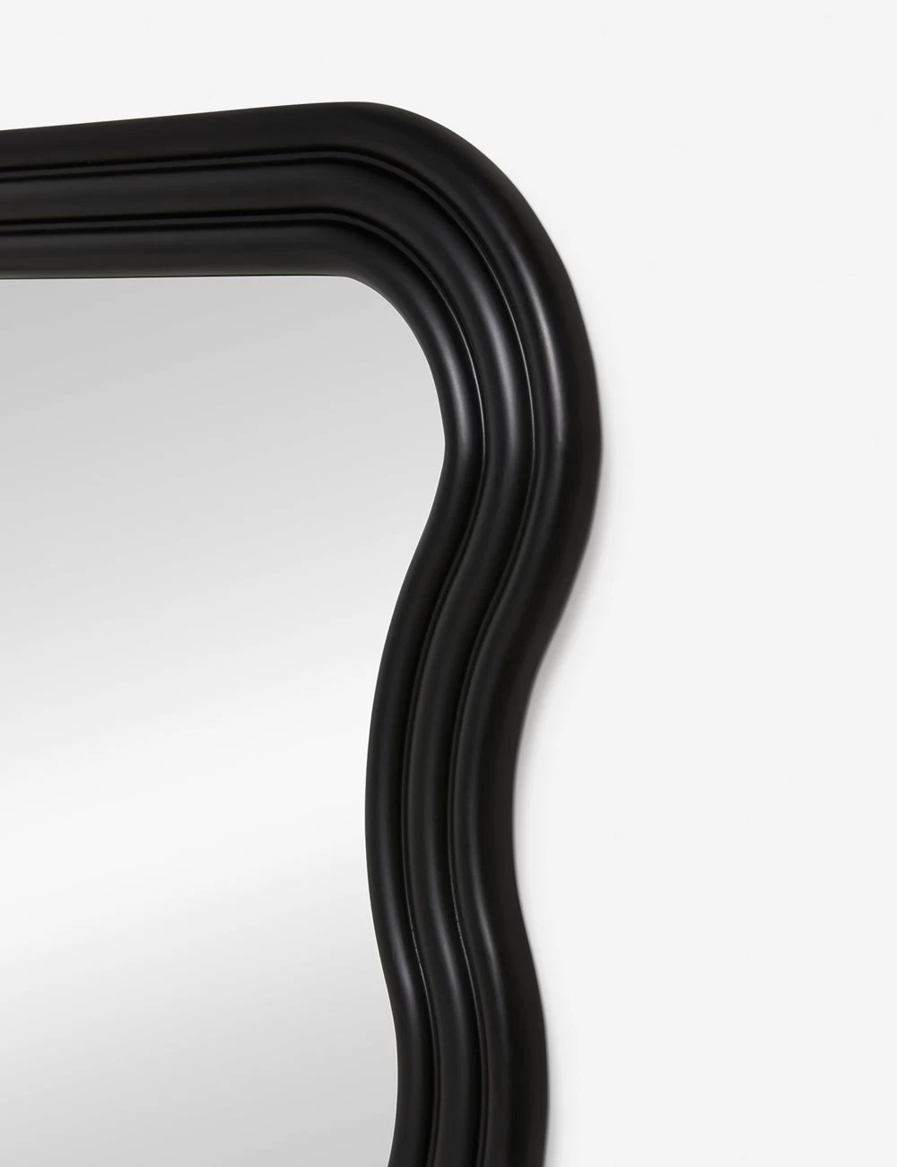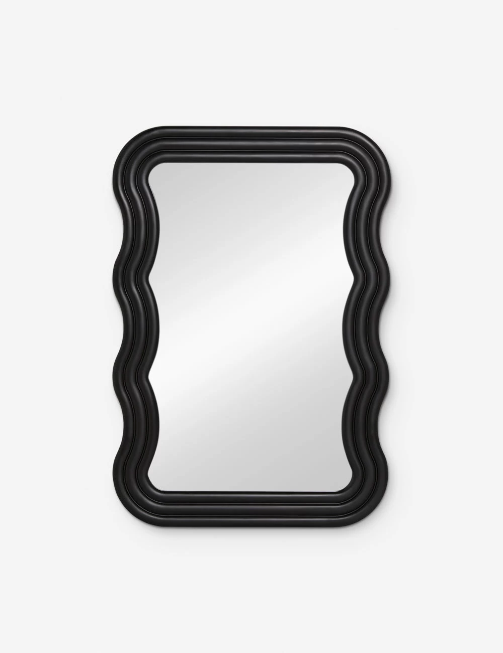 Soft and wavy matte black lines offer chic appeal in this wall mirror design exclusively from Lulu and Georgia. We love this thick-framed mirror in a modern space that blends sculptural elements in a high contrast look for striking impact.