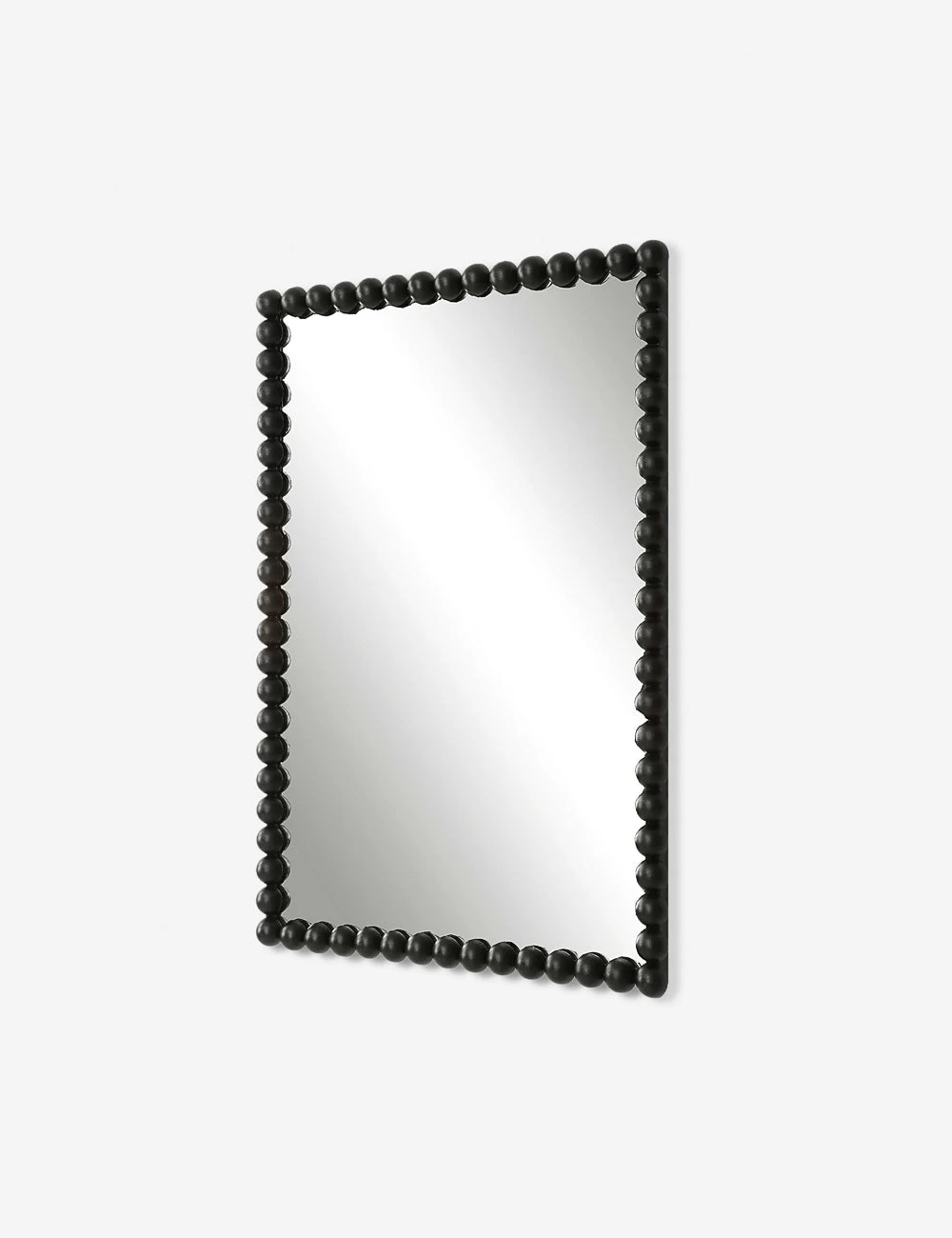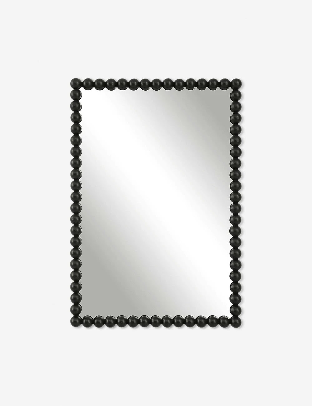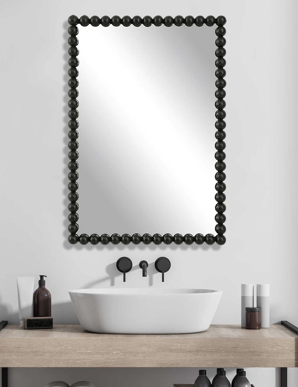 Layer a distinctive note into your look with this trend-forward mirror. Iron beading and a high-tone finish add a chic touch to this framed mirror for a playfully modern appeal. Mount vertically, horizontally, or lean on a dresser for a bright new look.