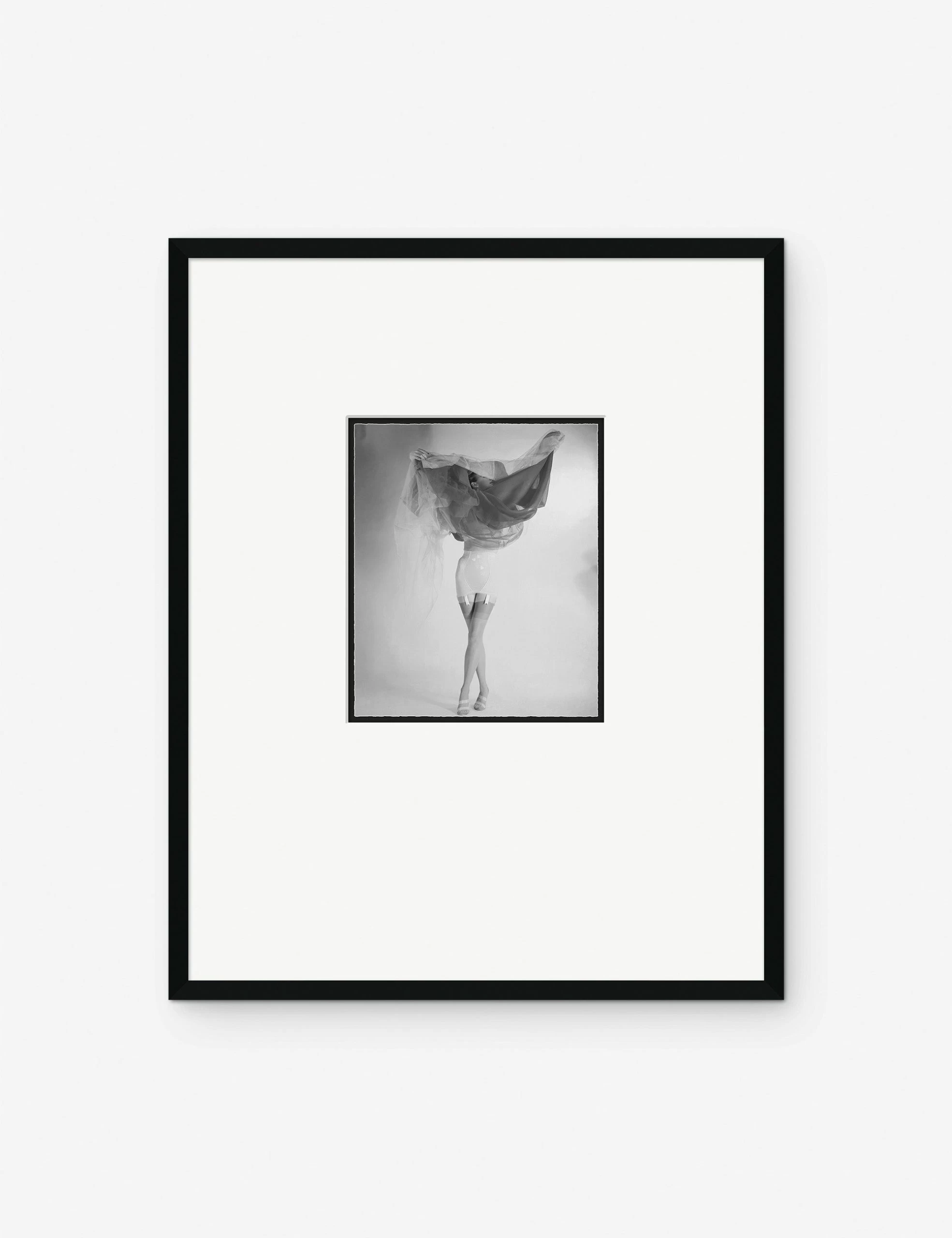 American-German photographer Erwin Blumenfield was best known for his editorial photographs for Vogue Magazine in the 1950s. This photography print is a grayscale version of his February 1953 portrait of a model concealed behind her chiffon skirt, and its cheeky composition makes for a refined addition to a gallery art wall.